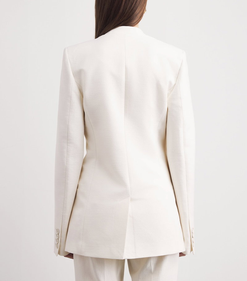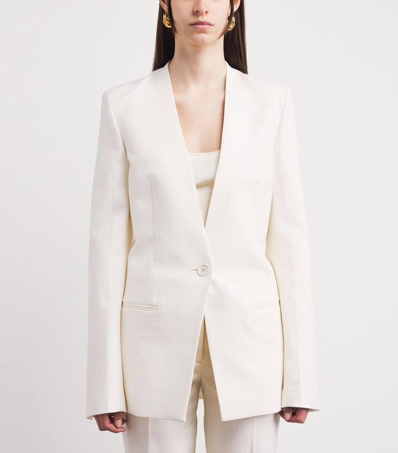 Founded in Stockholm in 2014, toteme consistently looks to Scandi minimalism as a source of inspiration to create tailored separates and uniform-style dressing. This blazer comes courtesy of the spring/summer collection, with a collarless design and tactile basketweave that celebrates sharp lines and a contemporary mood.
