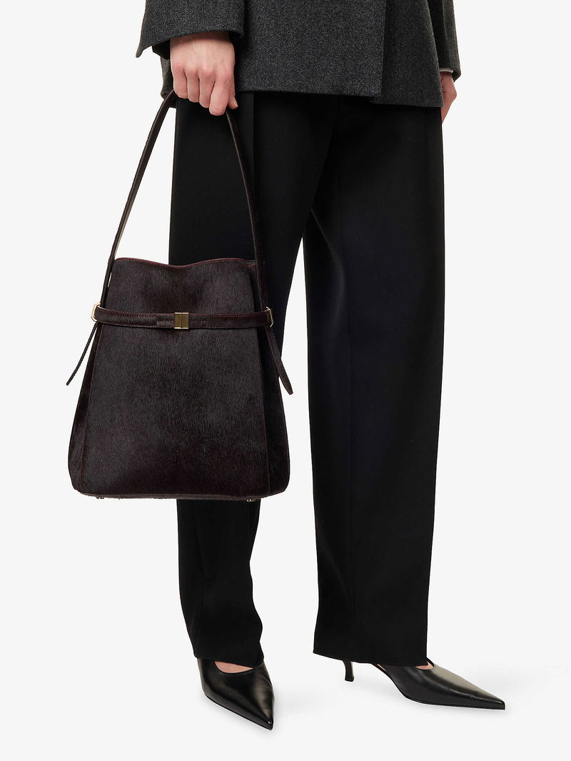 Belted Pony Hair Leather Bucket Bag