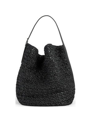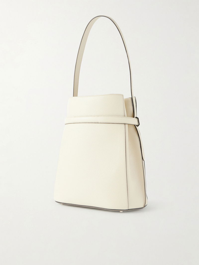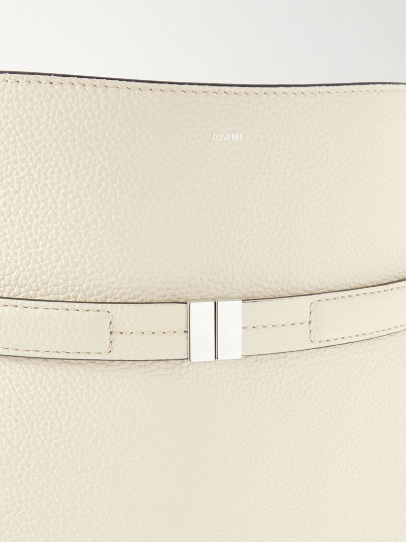 TOTEME's bag is as sleek and elevated as you'd expect. Crafted in Italy from textured-leather, it has a curved bucket design with a tonal 'belt' that cinches the shape. Stow your phone, sunglasses and headphones in the spacious, suede-lined compartments.