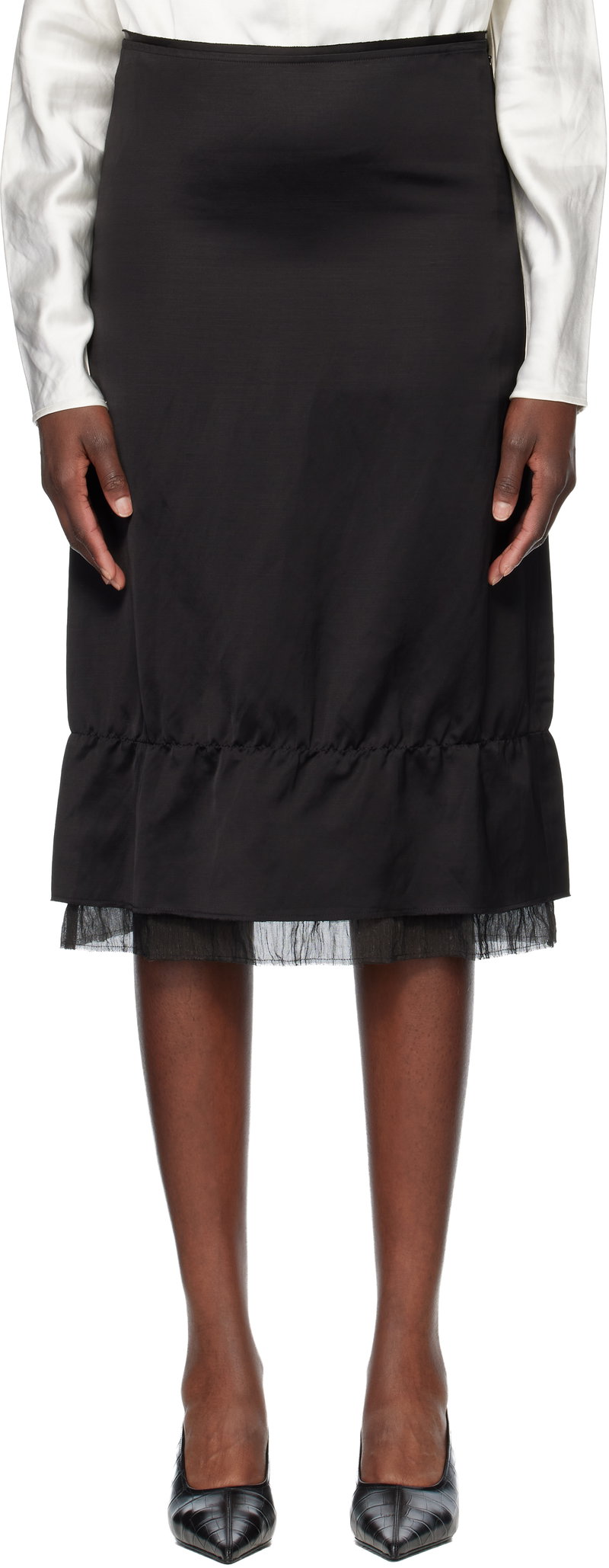 Layered Satin Midi Skirt