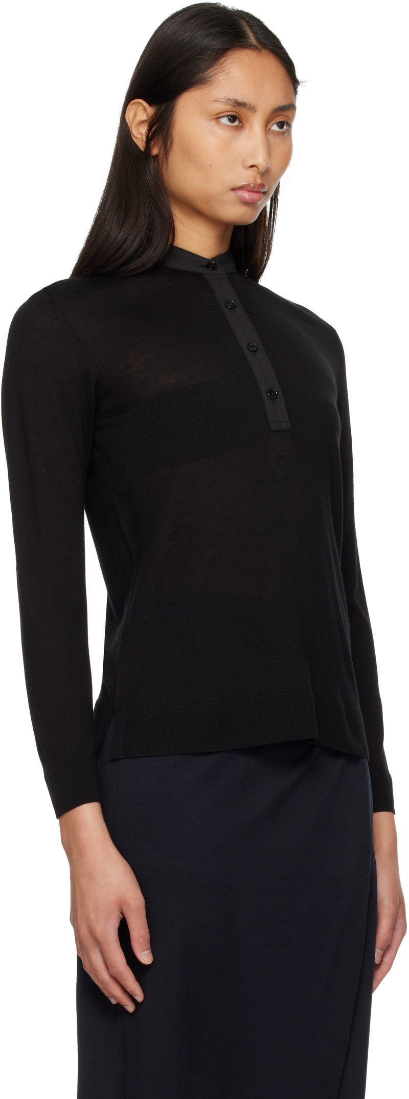Knit wool- and silk-blend sweater.