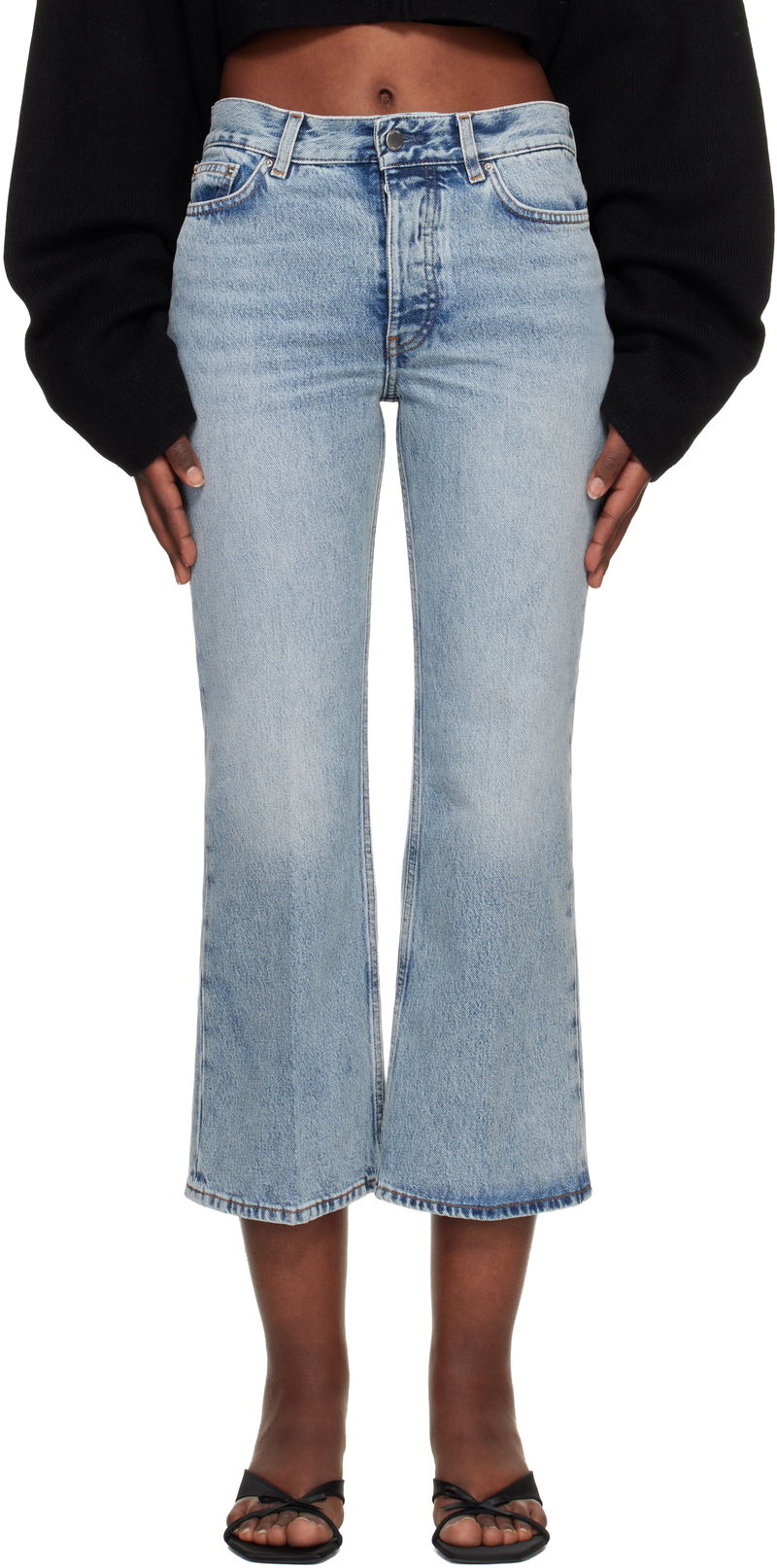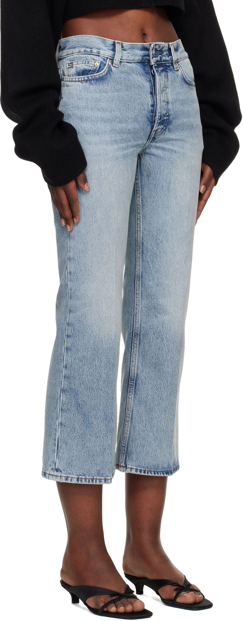 Non-stretch organic cotton denim jeans.
