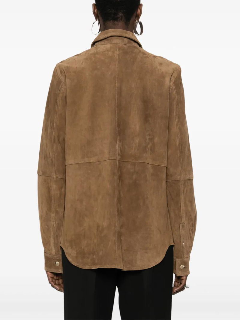 Button-fastening Leather Shirt - Brown