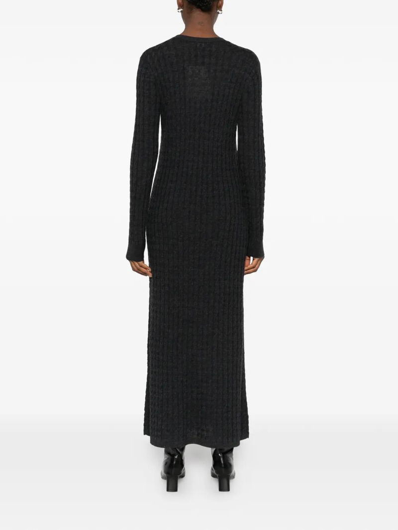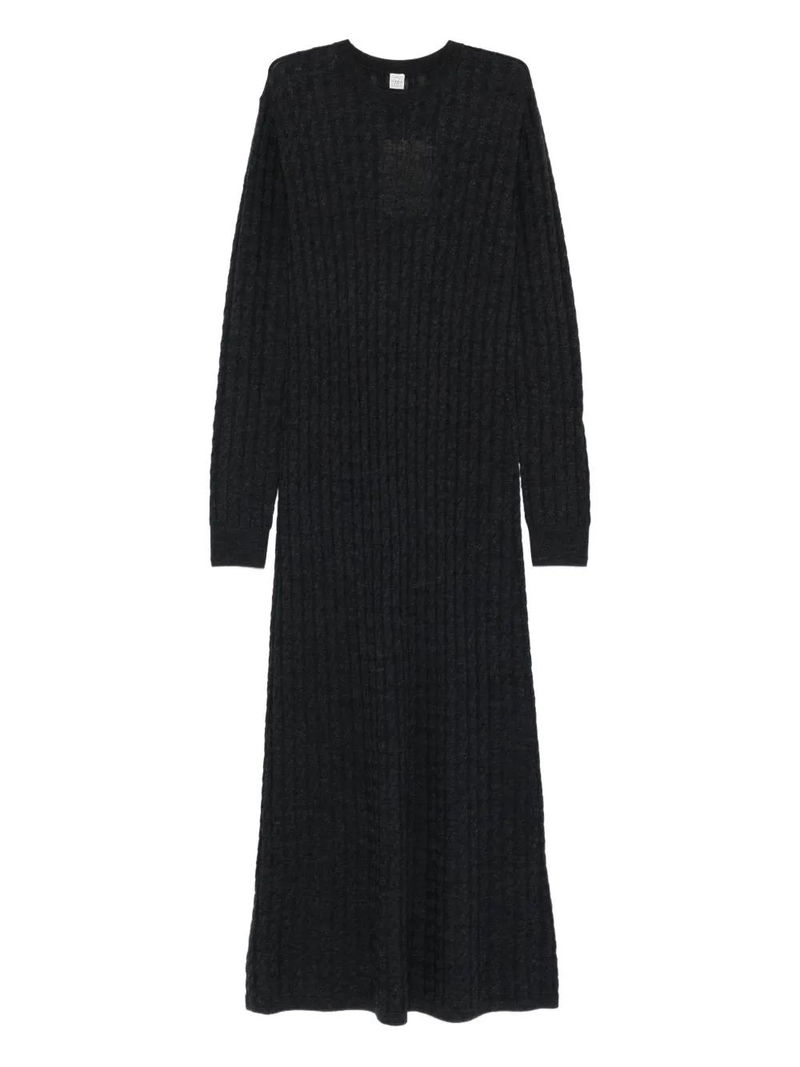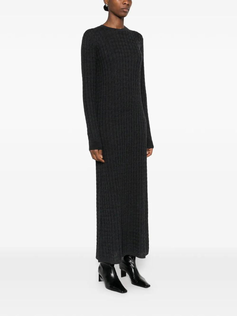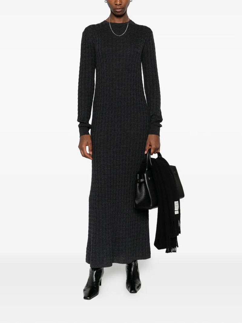 Charcoal, cable knit, long sleeves, round neck.