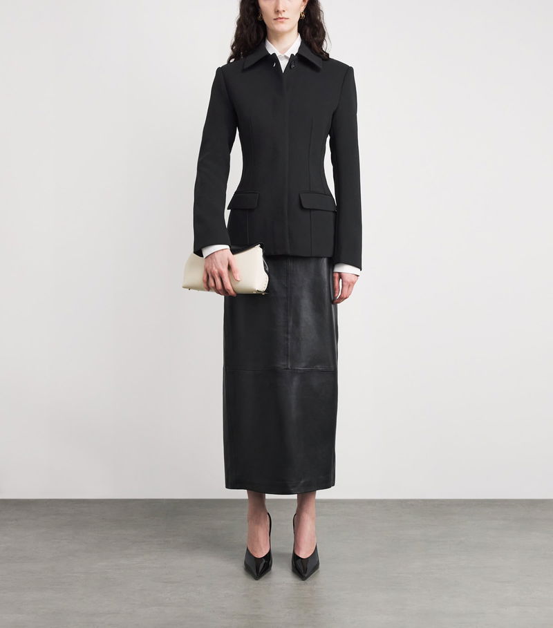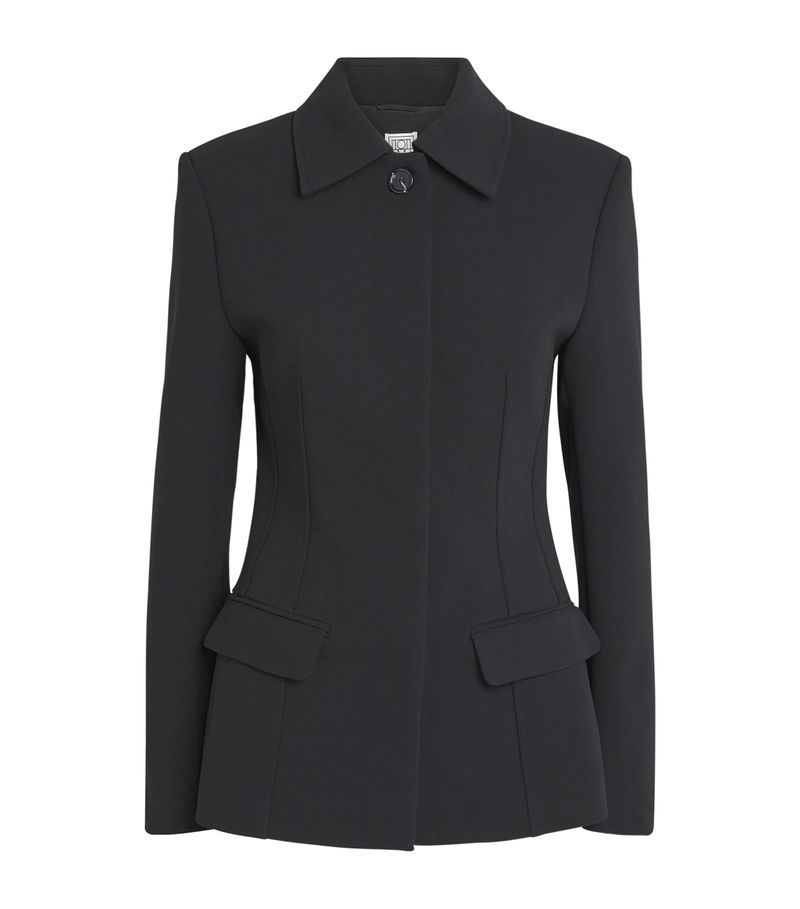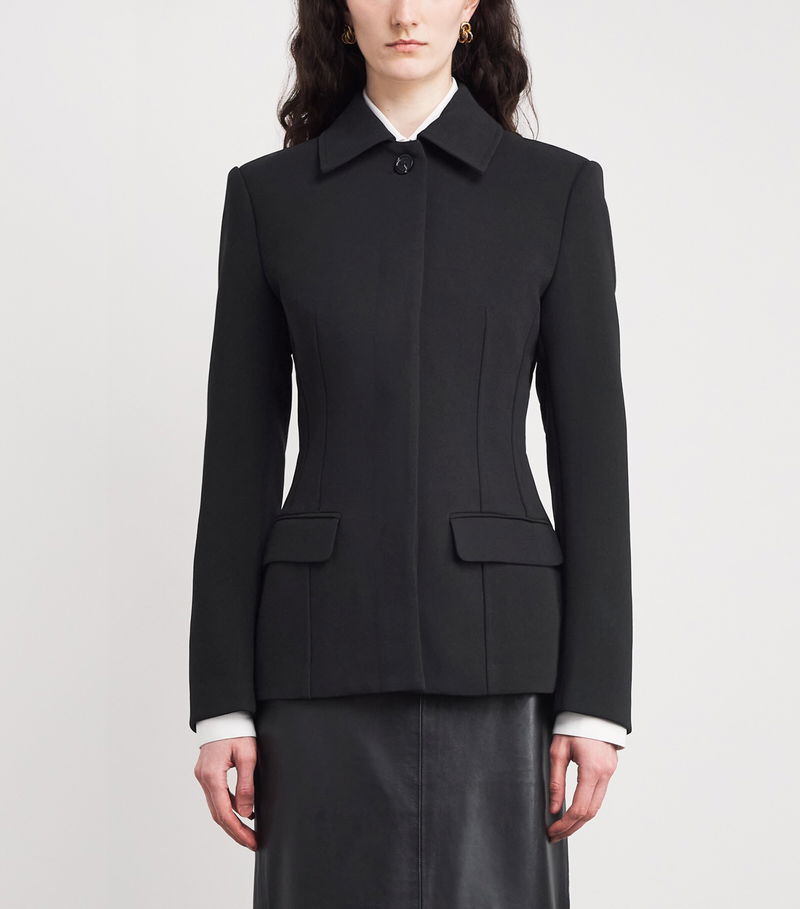 In keeping with the brand’s minimalist sensibility, clean lines are fundamental to Toteme, especially when it comes to tailoring. The sleek silhouette of this jacket, for instance, is constructed with darts that form a soft curve at the waistline, creating a flattering slim fit that brings a welcomed sense of femininity to the sartorial piece.