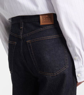 Straight-leg slim-fit non-stretch organic cotton denim jeans. Fading throughout.· Mid- to high-rise· Belt loops· Five-pocket styling· Button-fly· Cropped cuffs· Logo patch at back waist· Contrast stitching in tan.