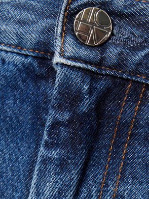Slim-fit straight-leg non-stretch organic cotton denim jeans. Subtle whiskering throughout.· Belt loops· Five-pocket styling· Button-fly· Leather logo patch at back waistband· Contrast stitching in tan.