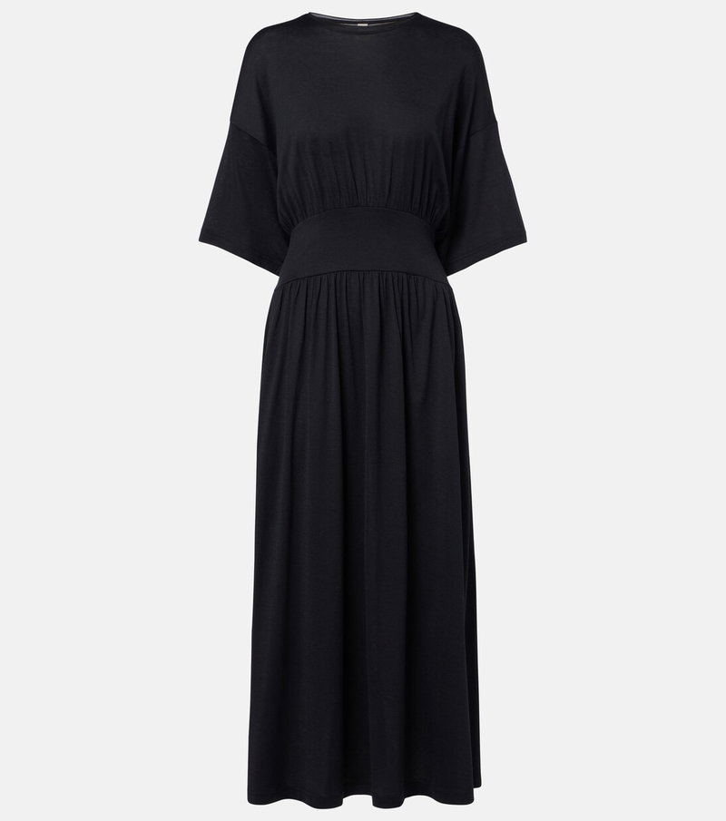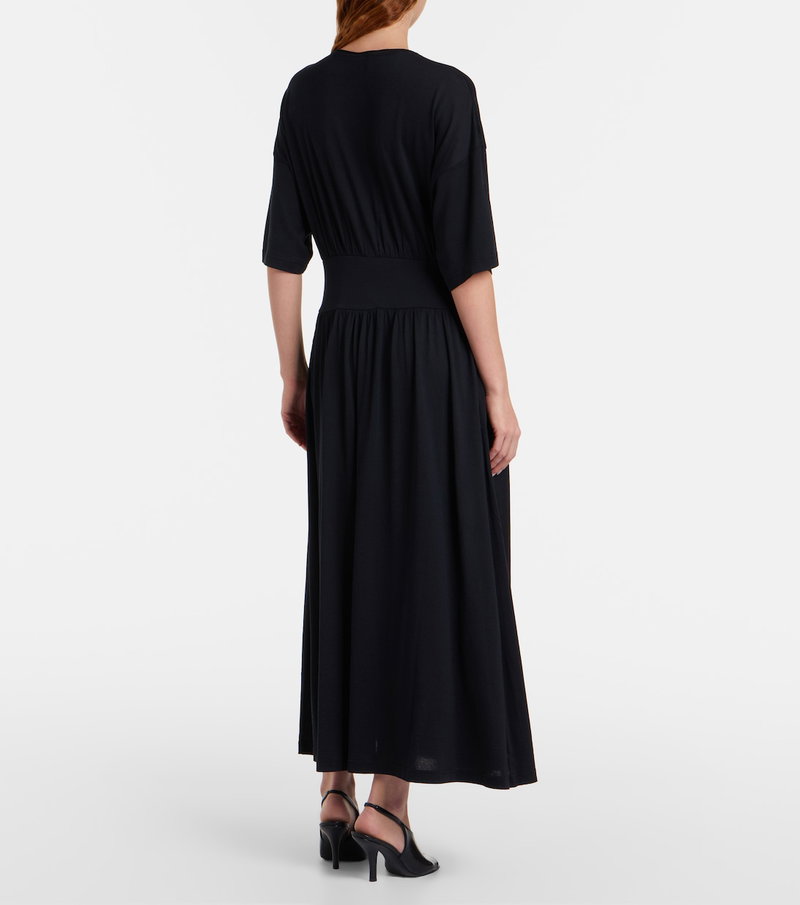 Define your dress code with styles from Toteme, a Stockholm-based brand dedicated to creating a modern uniform. This midi dress is crafted from soft cotton and silk jersey with a cinched waist and short sleeves.