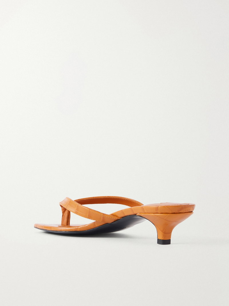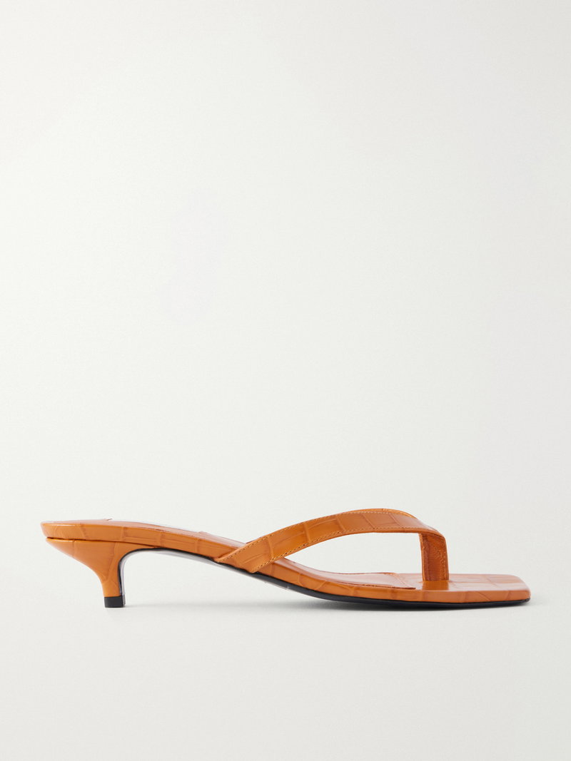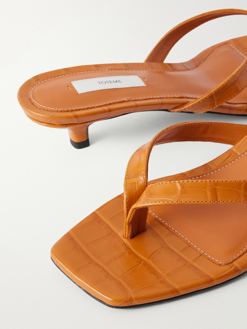 TOTEME's elevated flip flops are effortlessly chic. They're made from croc-effect leather in a minimal shape and have sleek squared toes and low kitten heels.