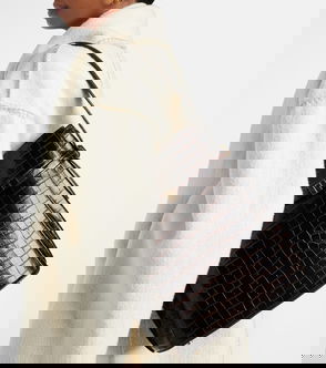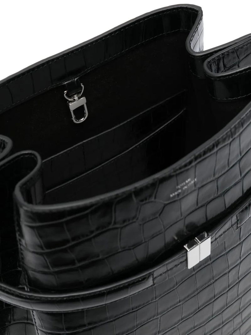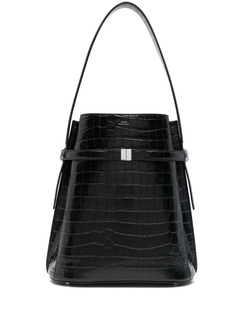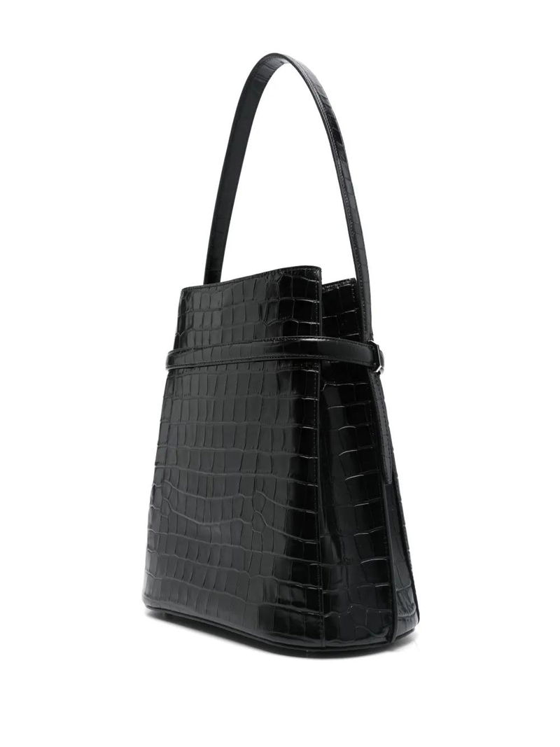 Croc-embossed Belted Bucket Bag - Black