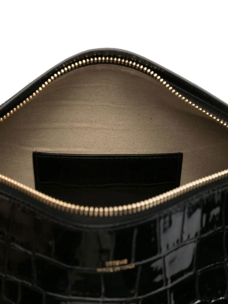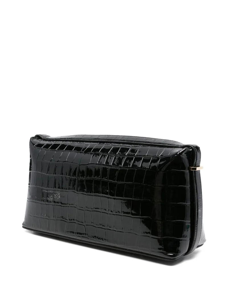 Crocodile-embossed Clutch - Black