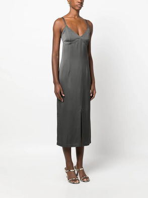 This slip dress is crafted from fluid satin with deconstructed stitching and one strap that falls effortlessly from the shoulder.