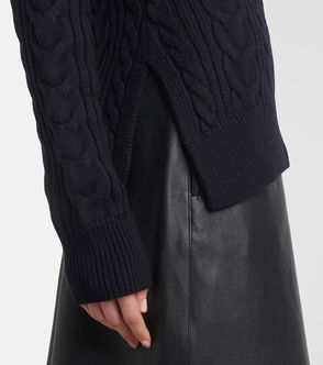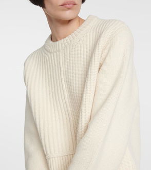 Shag-knit stretch alpaca- and recycled nylon-blend sweater. · Boxy-fit· Integrated scarf at mock neck · Dropped shoulders.