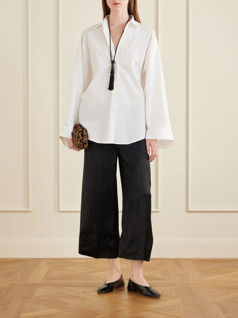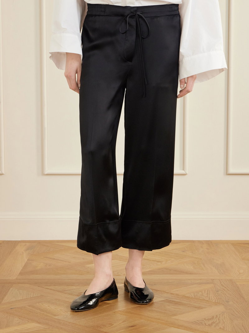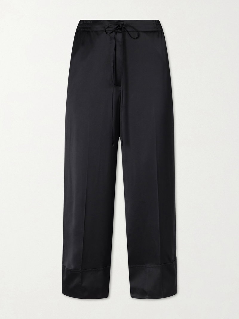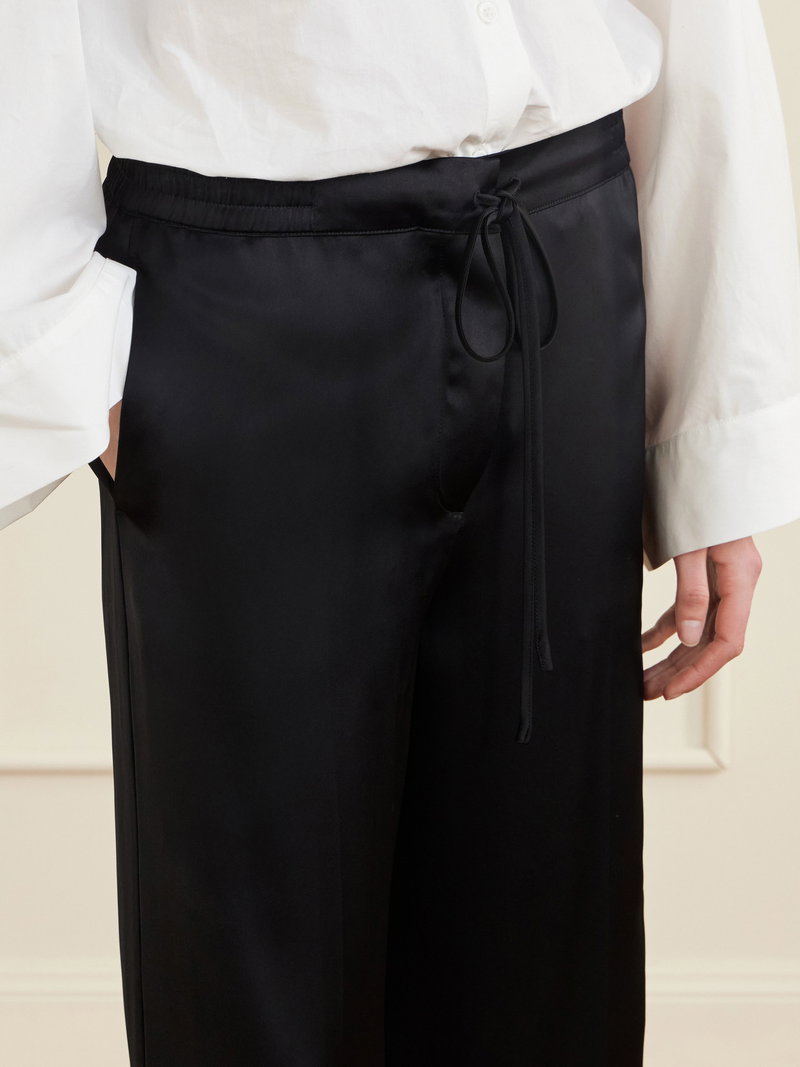 TOTEME's pants offer a relaxed option for formal occasions. Cut from satin, they are secured with a drawstring and have pressed front pleats. Style them with a blouse and kitten heels.