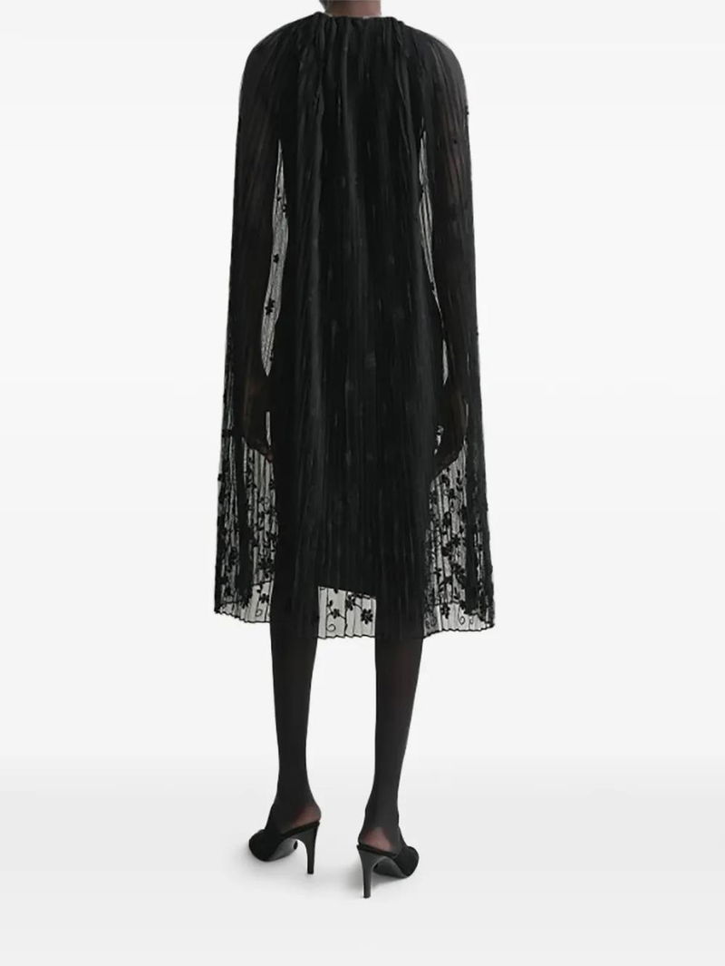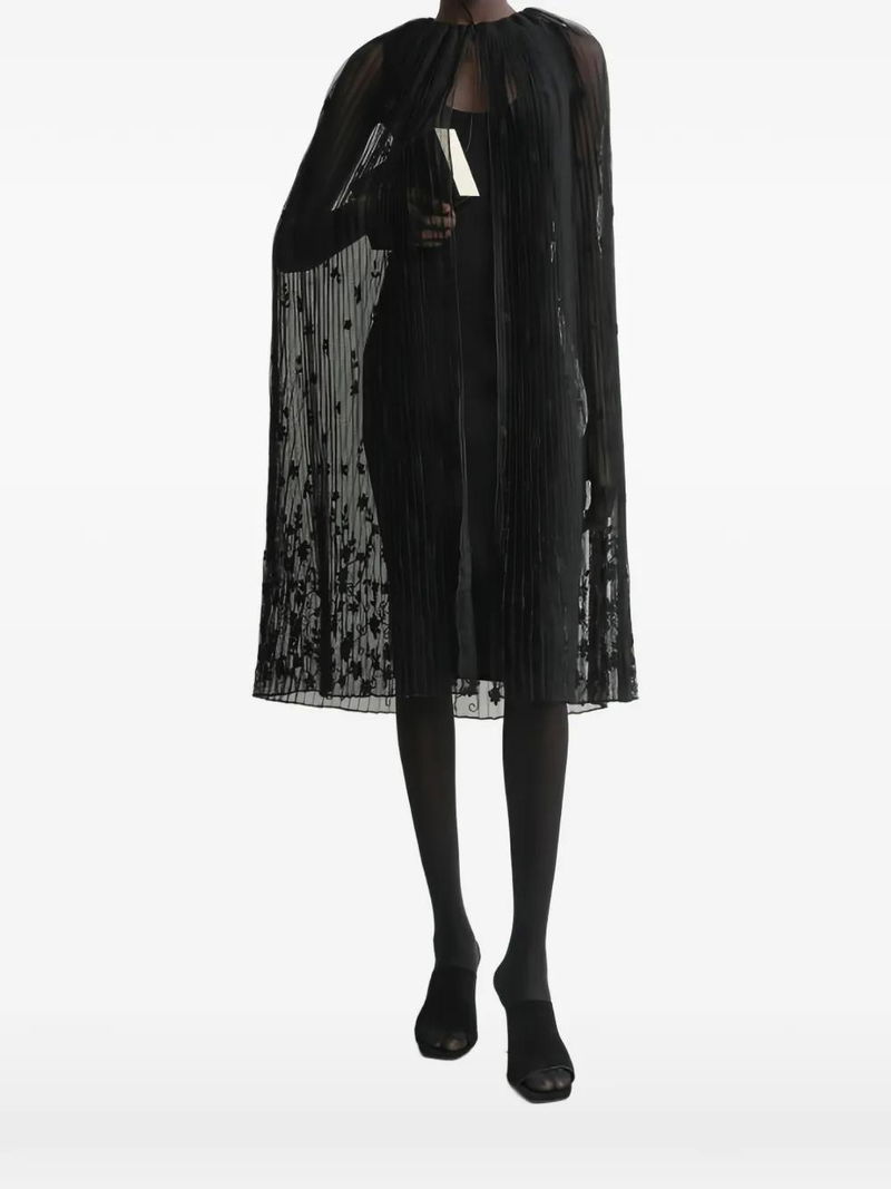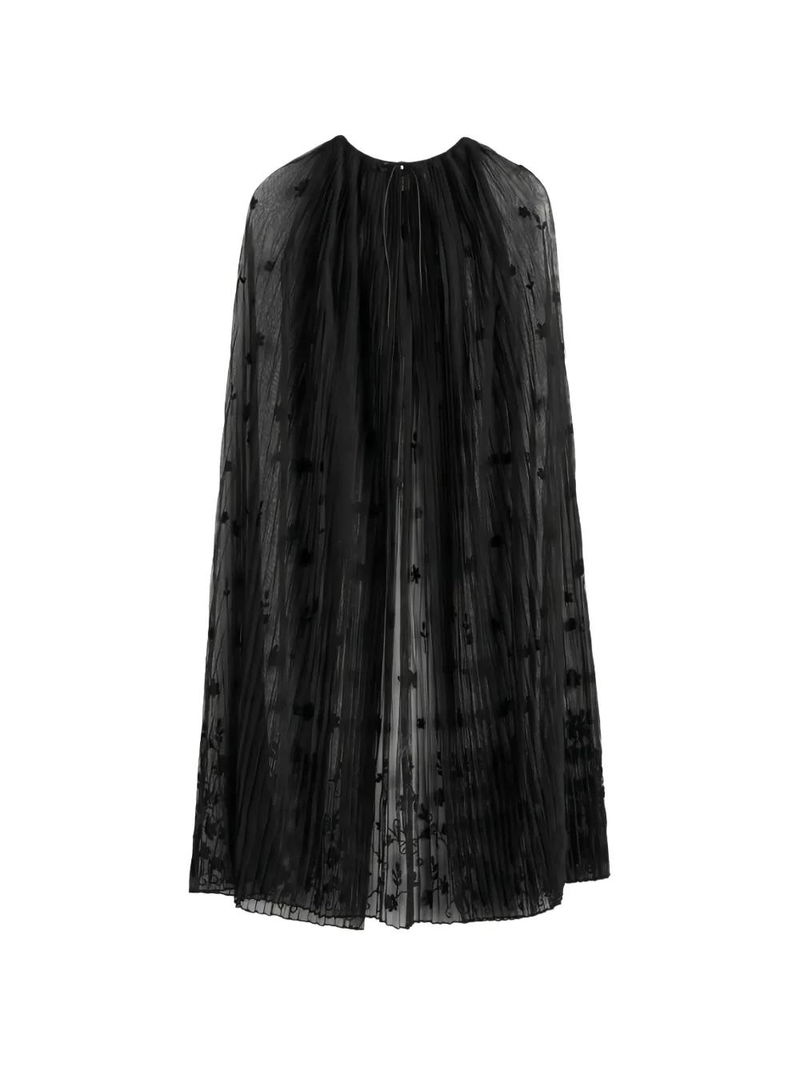 Black floral embroidery tie-fastening straps plissé effect.