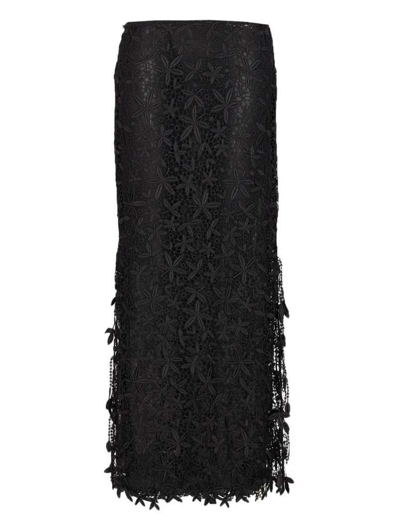 Floral Lace Skirt - Black
