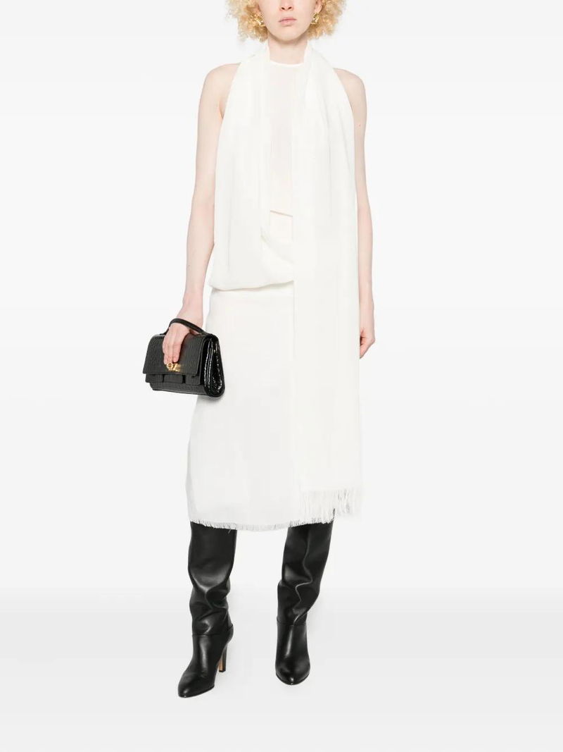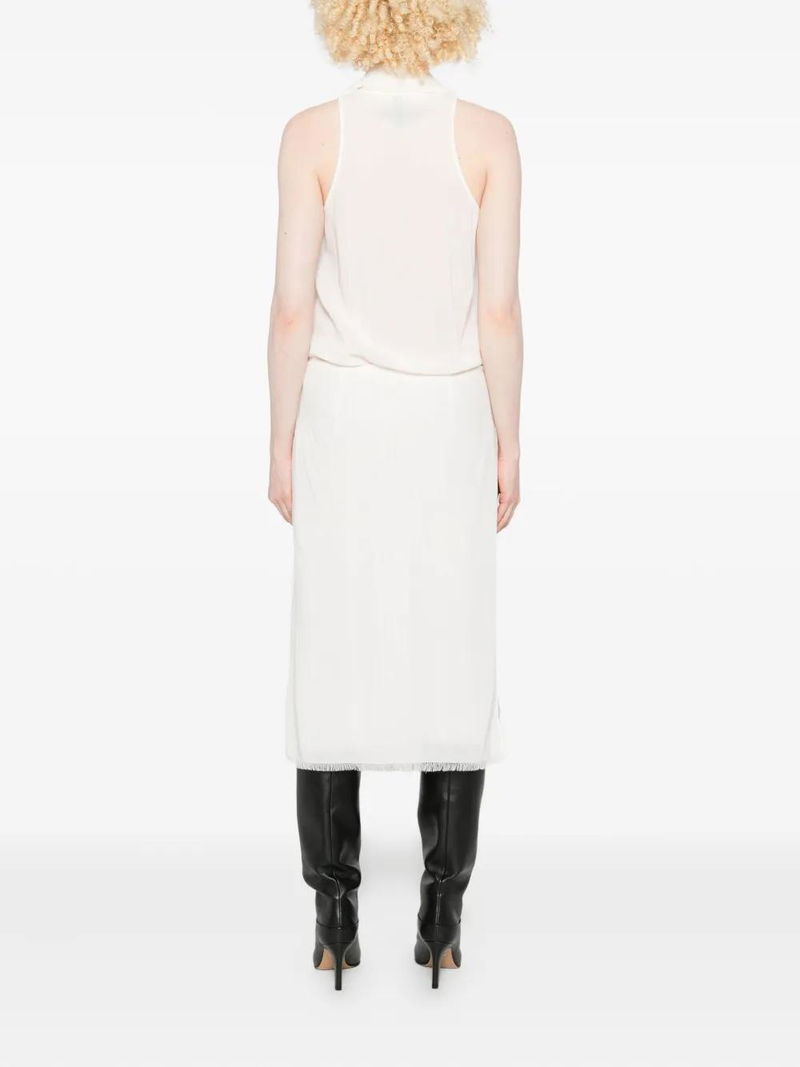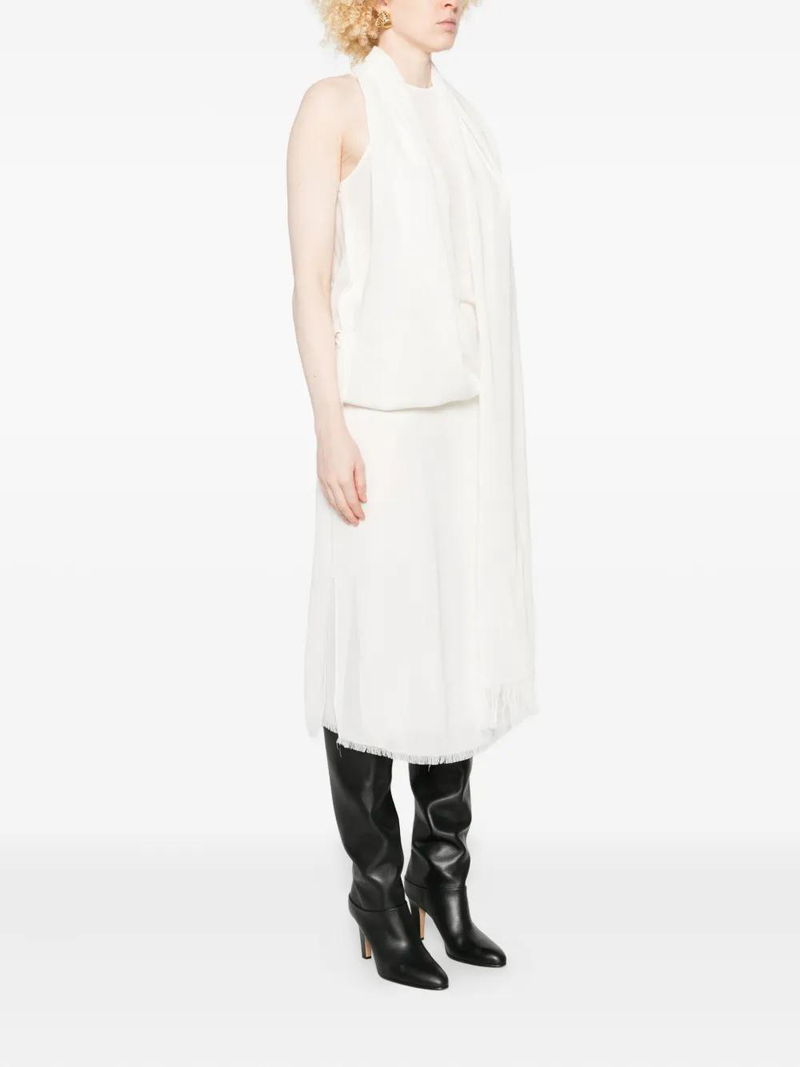 Frayed-edge Draped Dress - White