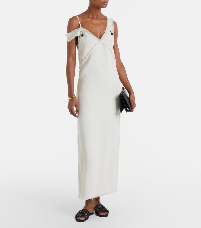 Define your dress code with styles from Toteme, a Stockholm-based brand dedicated to creating a modern uniform. Cut from a thick, woven fabric, this maxi dress features frayed raw hems and tiny charms at the base of the straps.