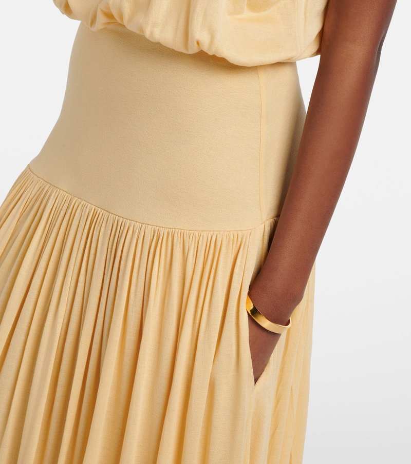 Define your dress code with styles from Toteme, a Stockholm-based brand dedicated to creating a modern uniform. This maxi dress is crafted from jersey with a fitted waistband, gathered detailing, and a ballooned hemline.