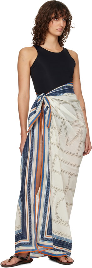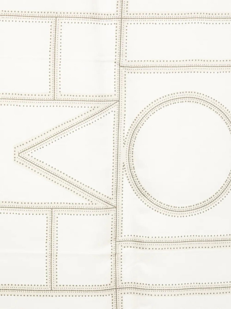 Beige and multicolour geometric pattern border print.
