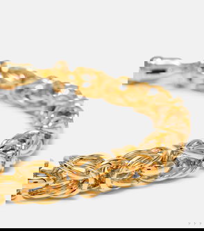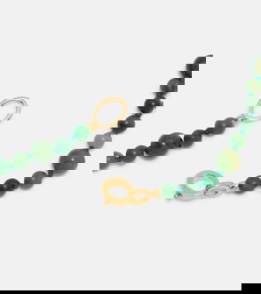 TOTEME's lariat necklace is embellished with a single teardrop-shaped onyx pendant featuring a sparkling Swarovski crystal. Made from gold-plated brass, it debuted at the Summer '25 show, where the fluid shape beautifully contrasted the sleek architectural clothing. Adjust the dainty chain to your ideal drop.
