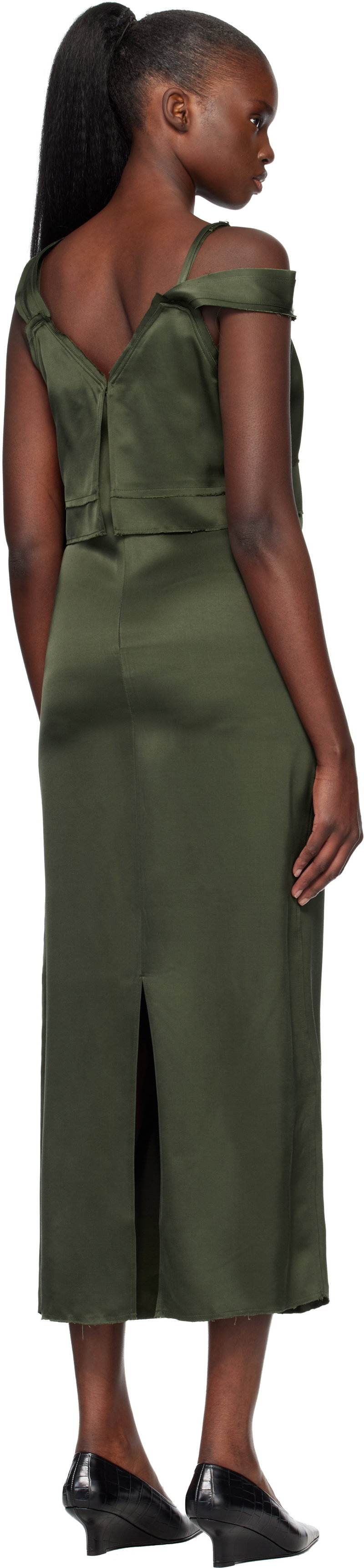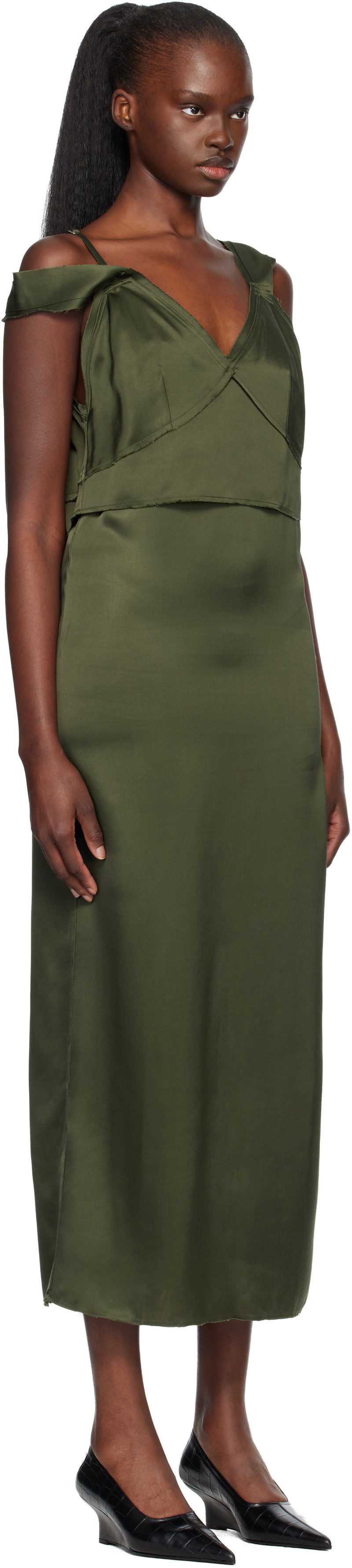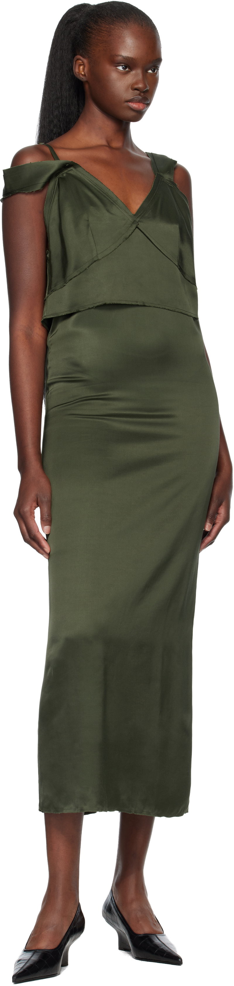 Double-faced viscose satin maxi dress.