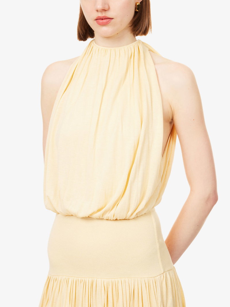 High-Neck Gathered Jersey Dress