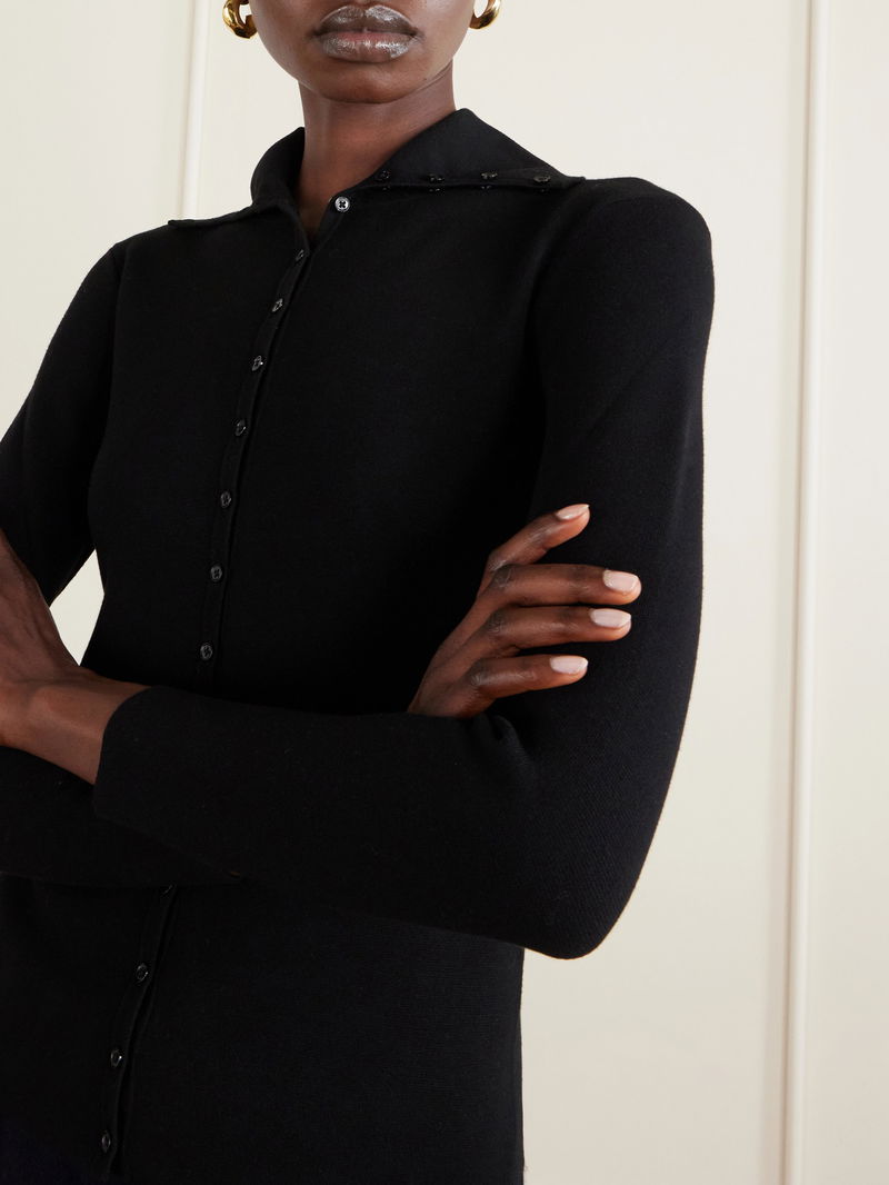 TOTEME's chic cardigan is the perfect example of the label's refined approach to wardrobe foundations. It's knitted for a slim fit with a hint of stretch in the blend and has glossy buttons right up to the polo-style collar.