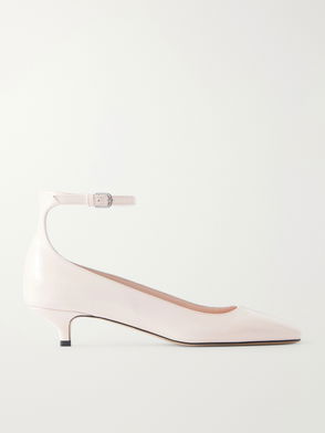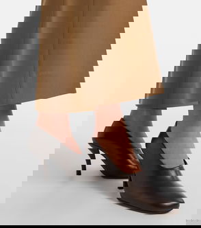 Beige leather pointed toe sculpted heel slip-on style