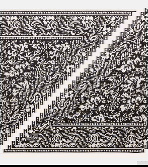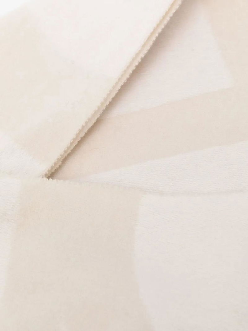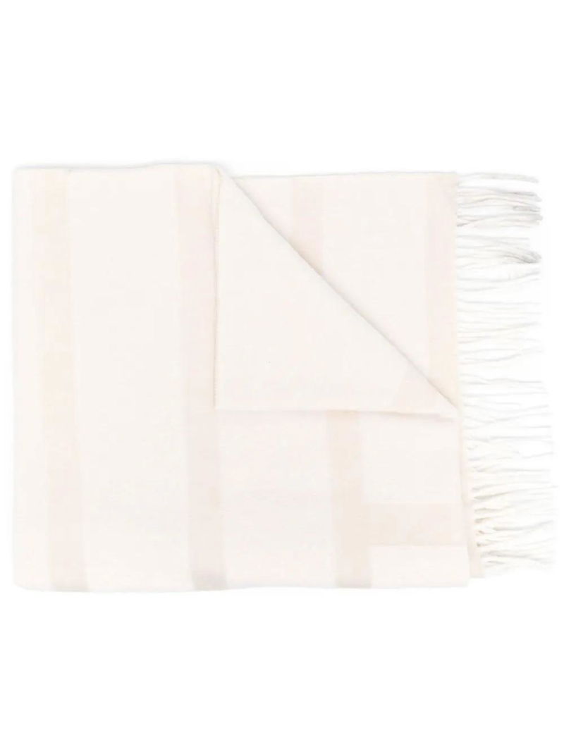 Bone white wool monogram jacquard fringed edge wraparound style.