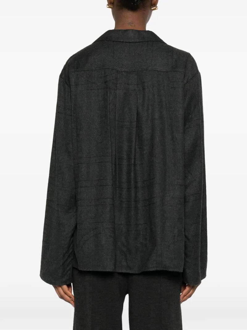 Grey tonal check pattern, button fastening, long sleeves, notched lapels.