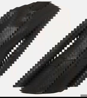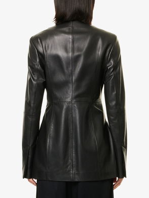 Padded grained calfskin biker jacket.