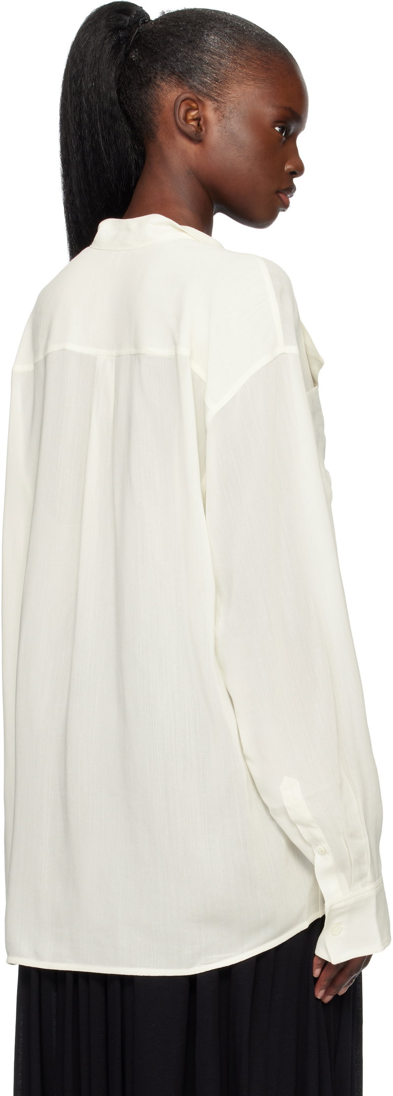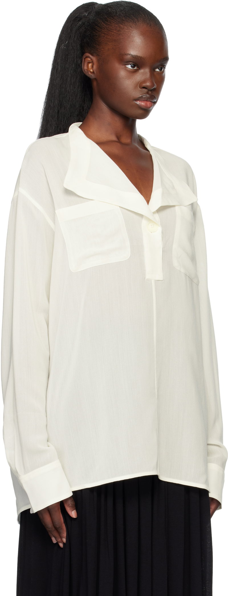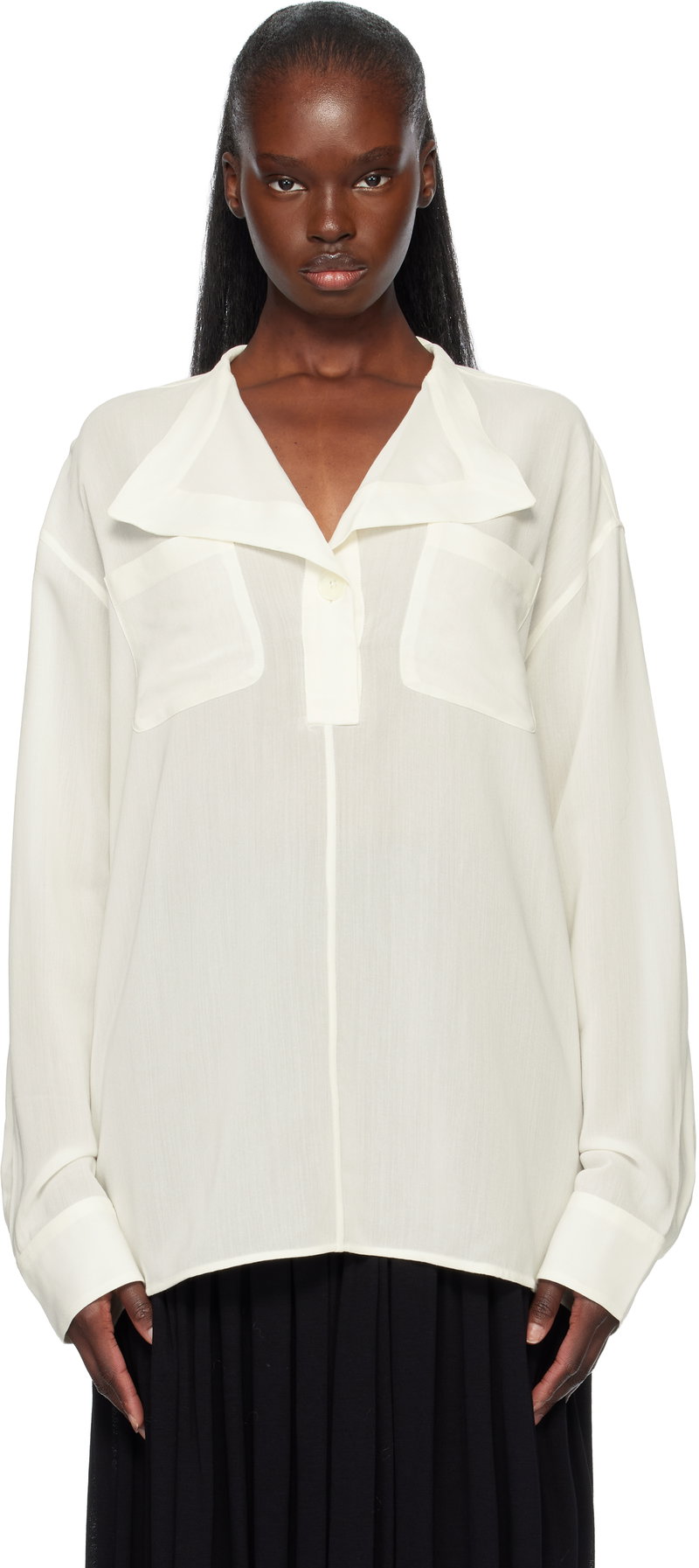 Semi-sheer viscose- and wool-blend crêpe blouse.