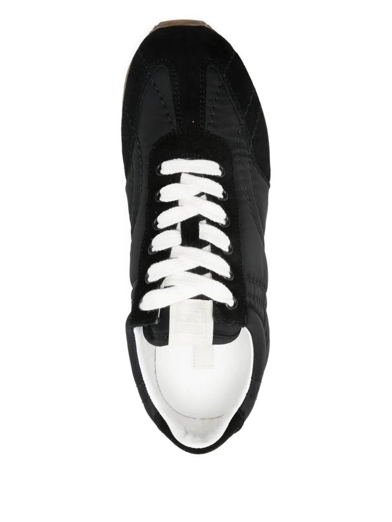 Black, lace-up fastening, rubber sole, round toe.