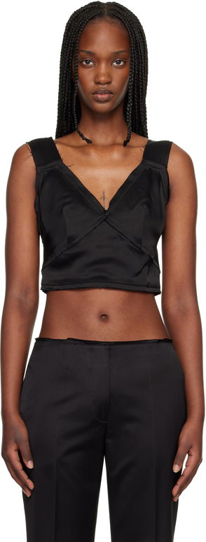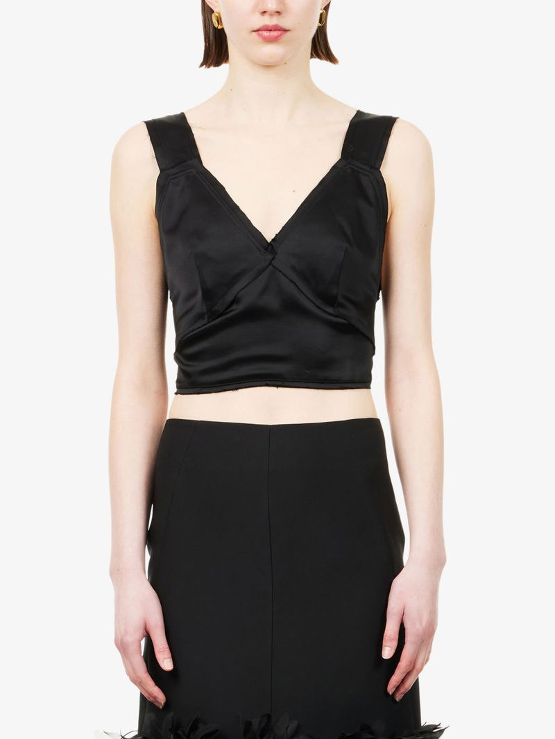 • Cropped cami top, v-neck, panelled, exposed silver-tone back zip