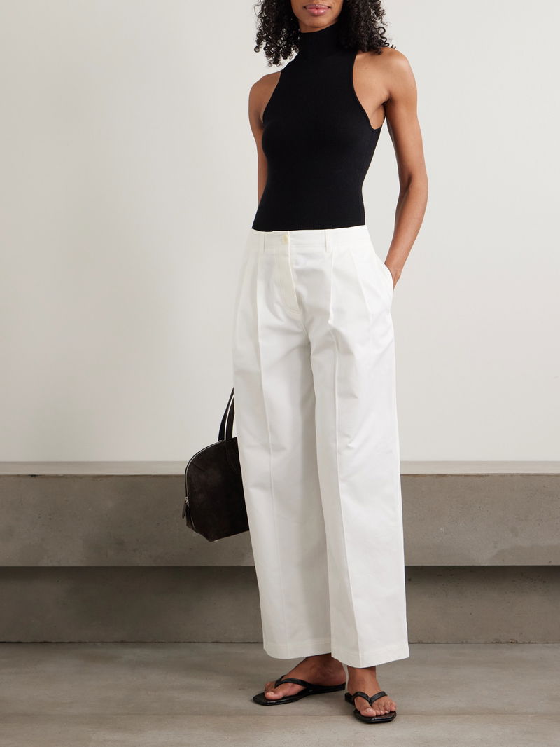 Pleated Cotton-twill Wide-leg Pants