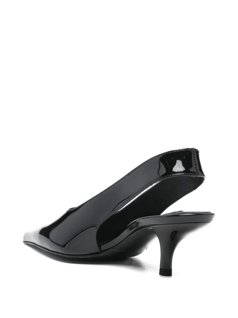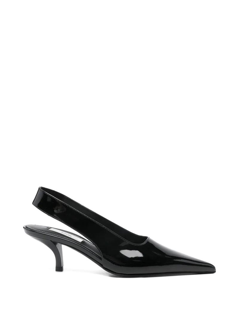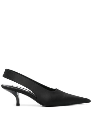 Black, pointed toe, slingback strap.