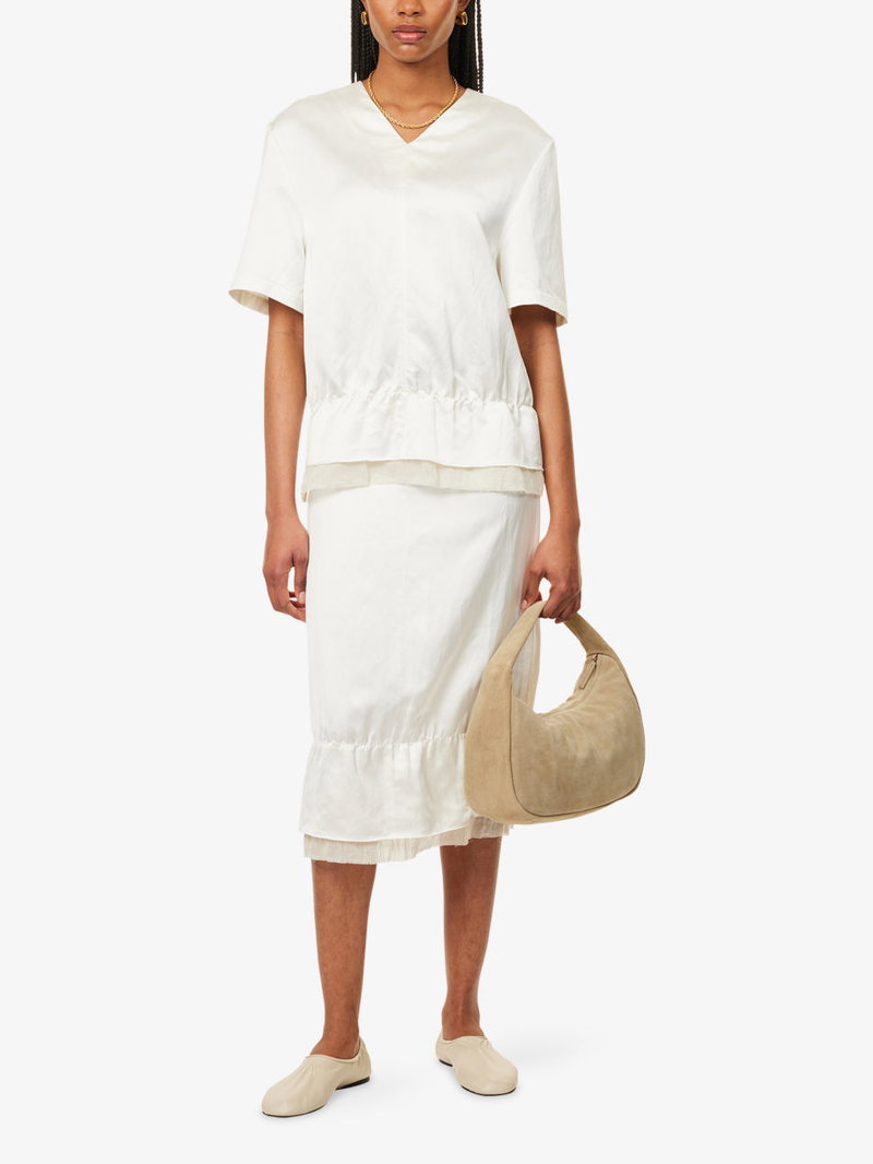 Shop More: White Clothing White Skirts White Midi Skirts TOTEME Clothing TOTEME White Clothing TOTEME Skirts TOTEME Midi Skirts