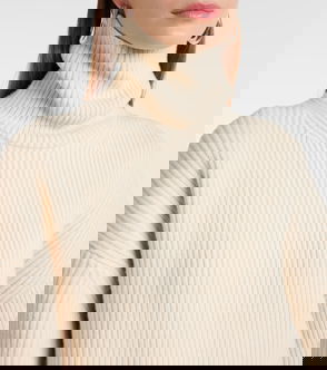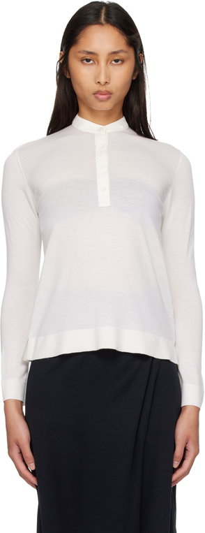 Off-white ribbed knit crew neck long sleeves.