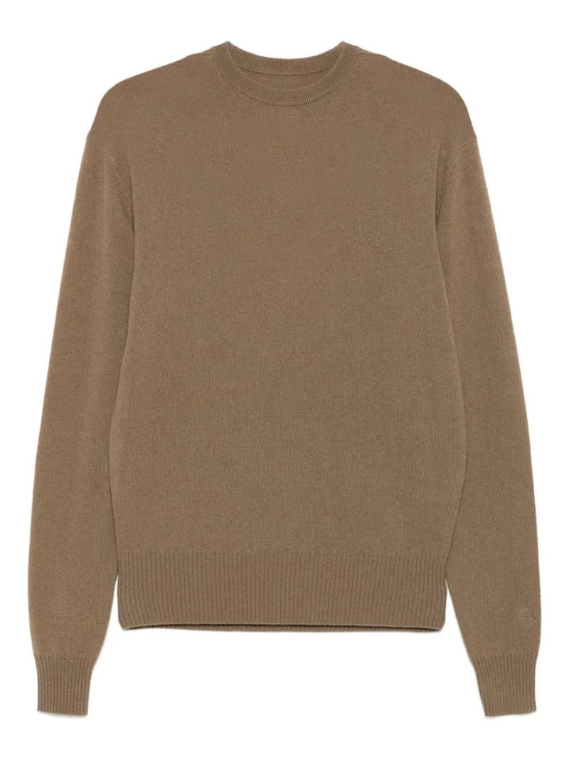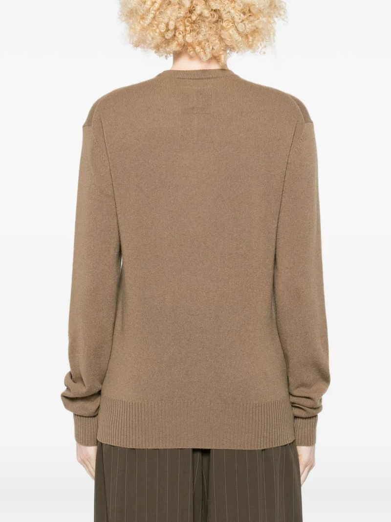 Brown round neck long sleeves ribbed cuffs ribbed hem.