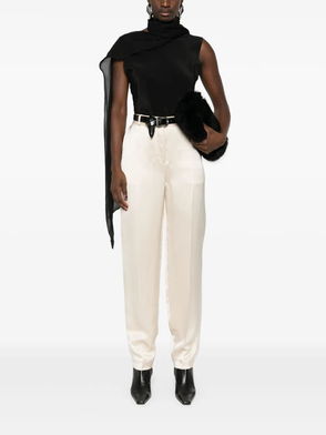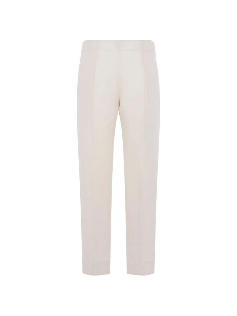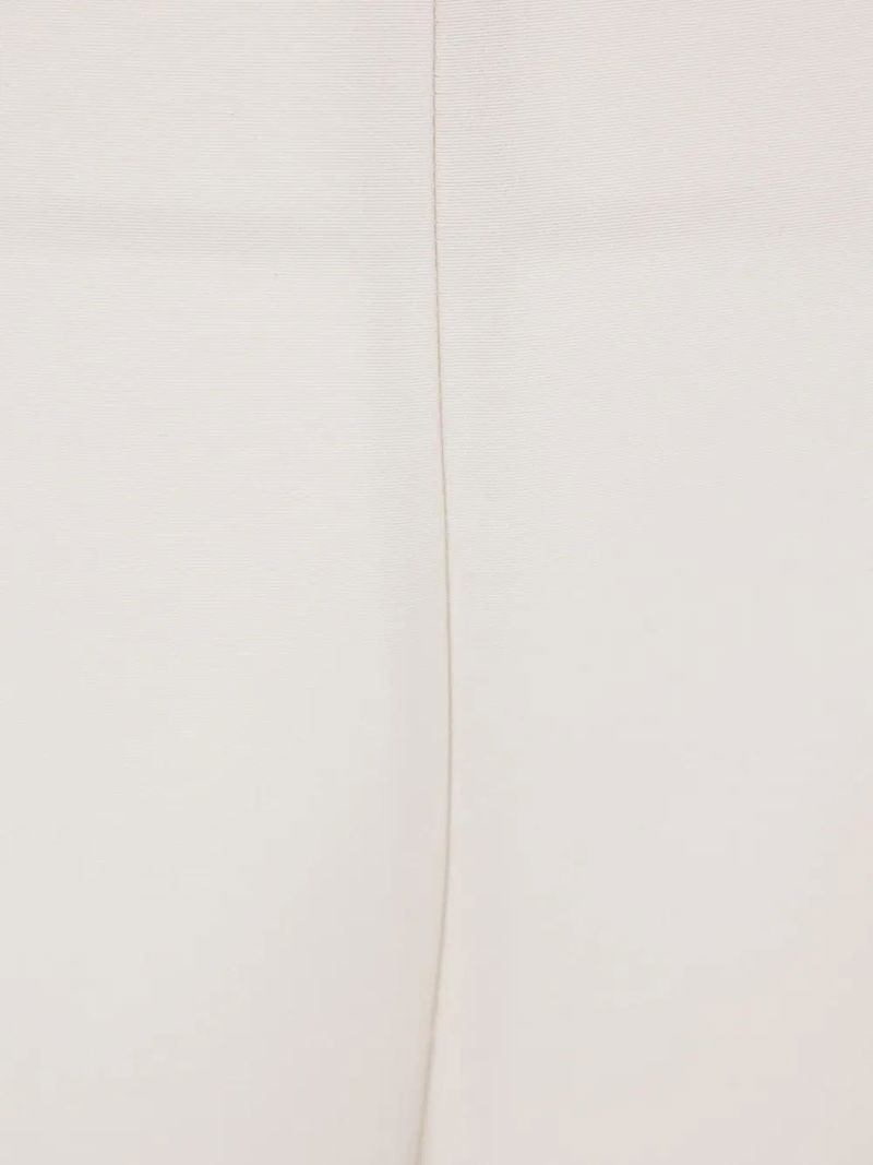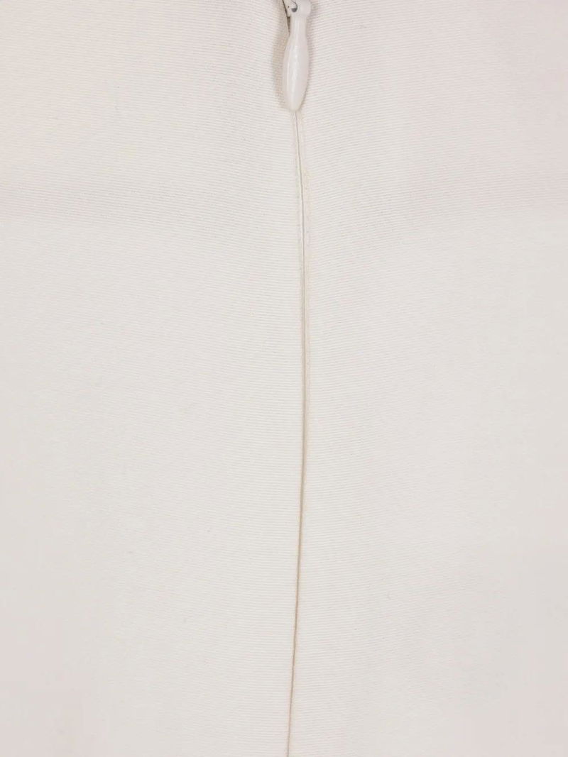Off-white, seam details, concealed front fastening.