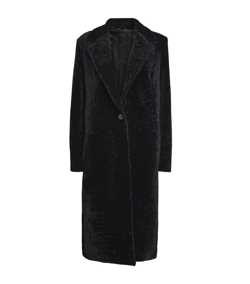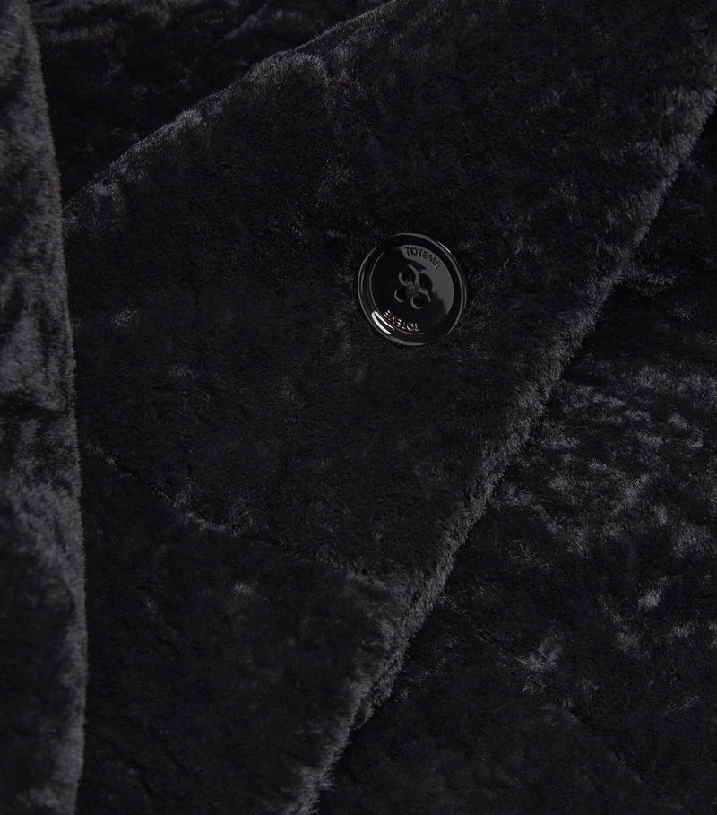 Instead of traditional cotton gabardine, the label uses shearling to create a plushly textured piece that is finished with a single-breasted cut.