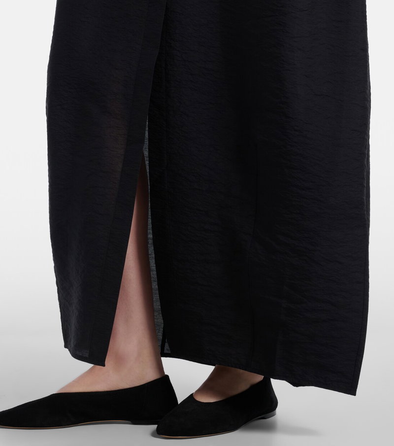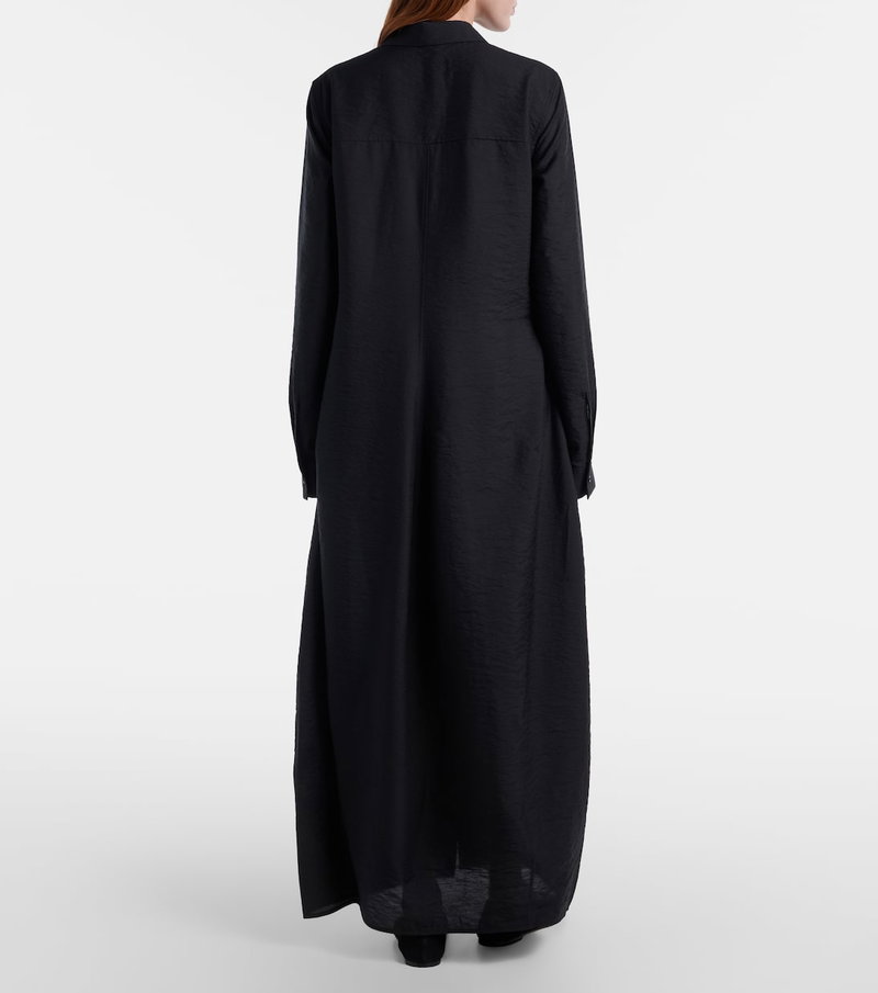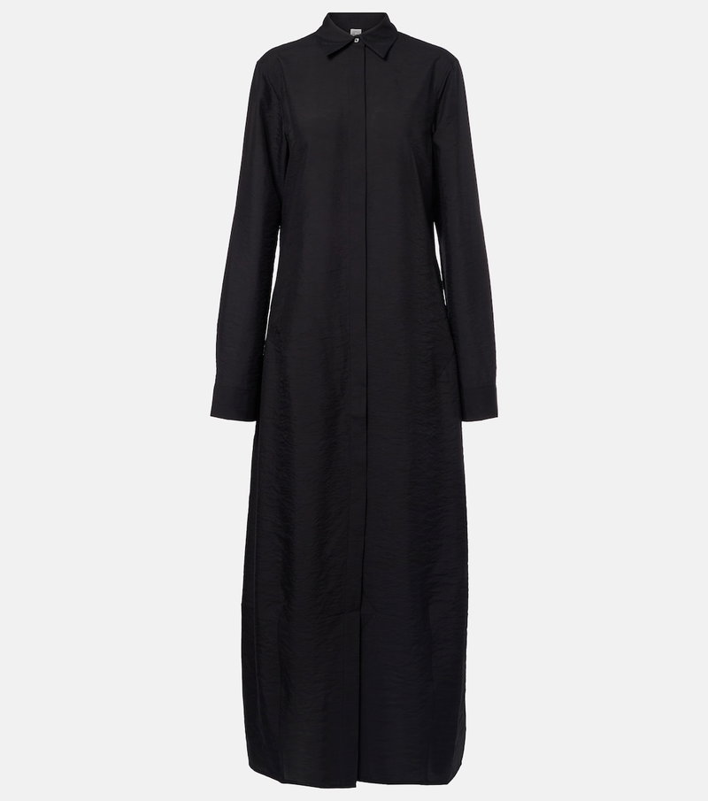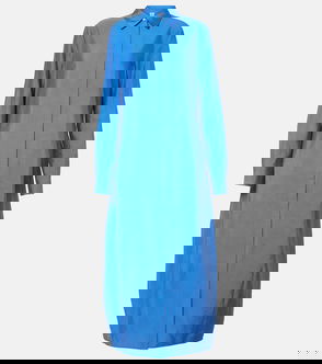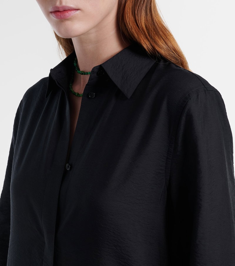 Made from a crinkled silk blend, this lightweight shirt dress features a parachute-inspired silhouette with a wide, curvy skirt.