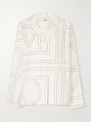 Tapping into the nightwear-as-daywear trend, this toteme shirt is modelled after a classic pyjama top for a look of nonchalant elegance. Imagined with a fluid and relaxed fit courtesy of its silk construction, the lustrous design is finished with a monogram embroidery that shimmers beautifully against the sheen of its profile.