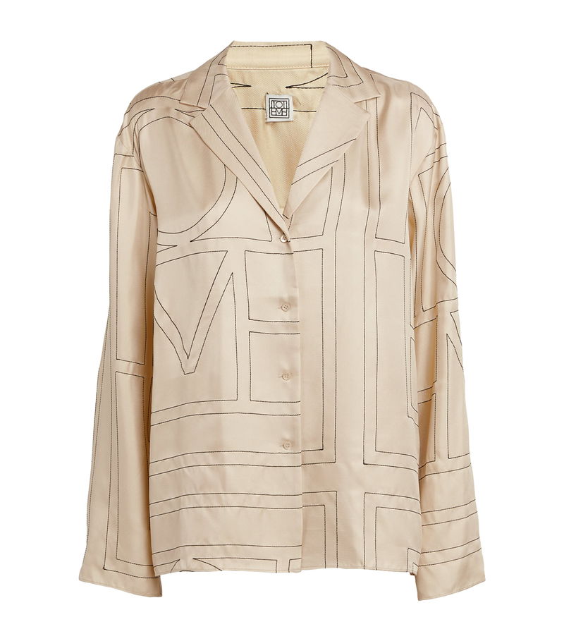Tapping into the nightwear-as-daywear trend that’s sweeping across runways and wardrobes alike, this toteme shirt is modelled after a classic pyjama top for a look of nonchalant elegance. Afforded with a fluid and oversized fit courtesy of its silk construction, the lustrous design is finished with a monogram embroidery that shimmers beautifully against the sheen of its profile.
