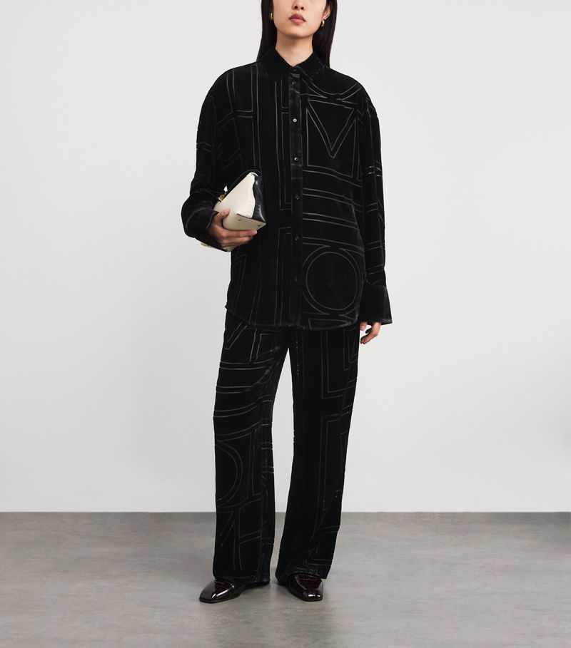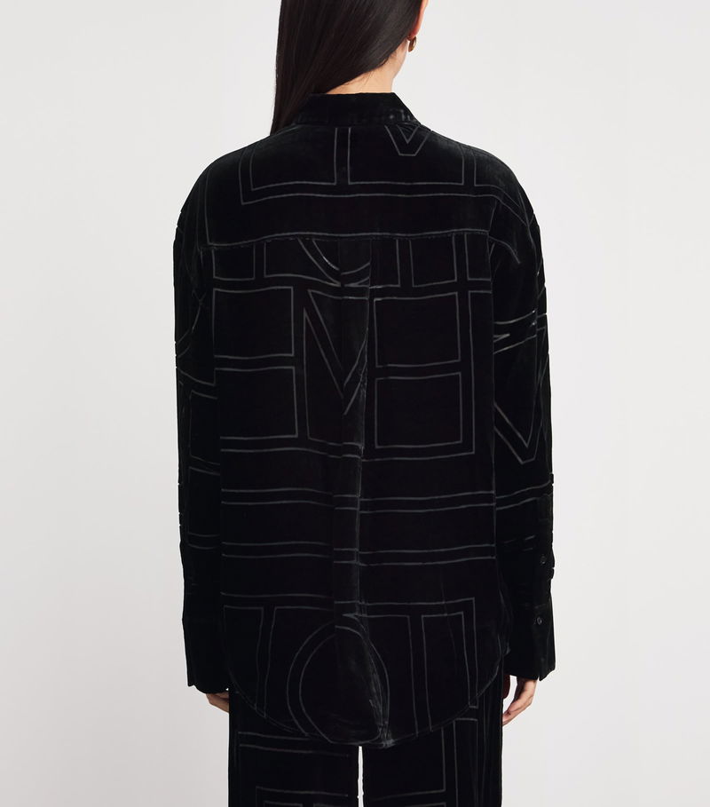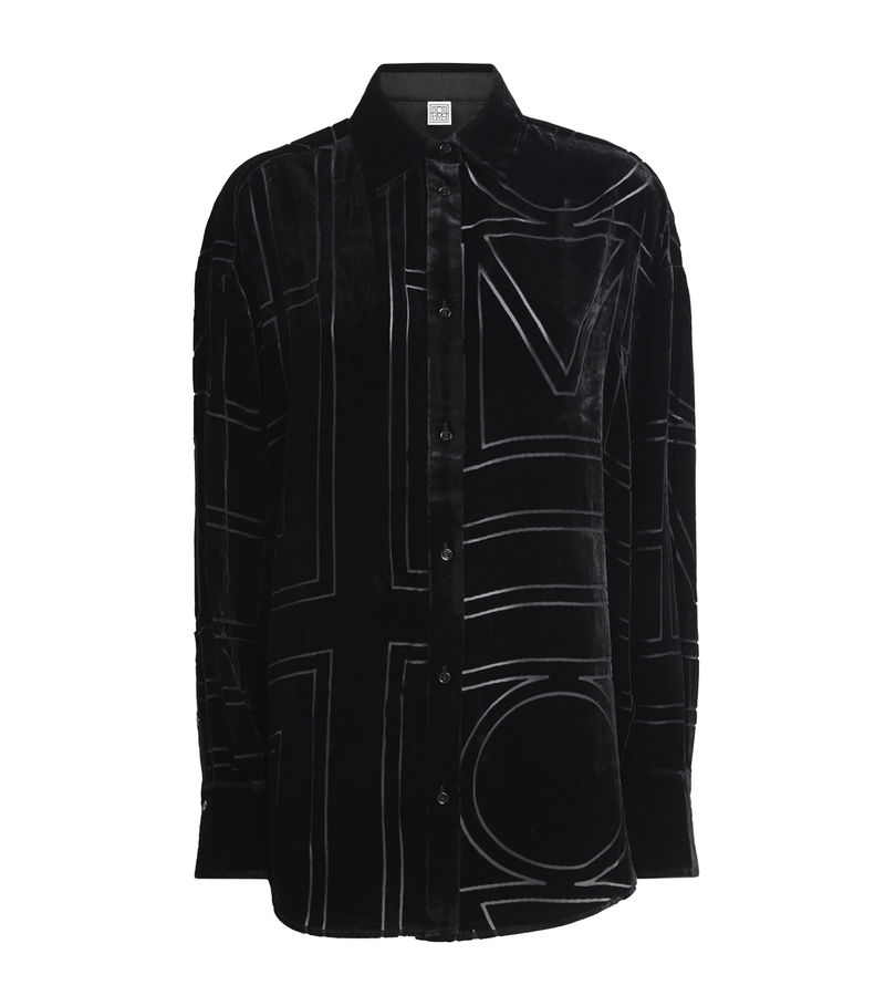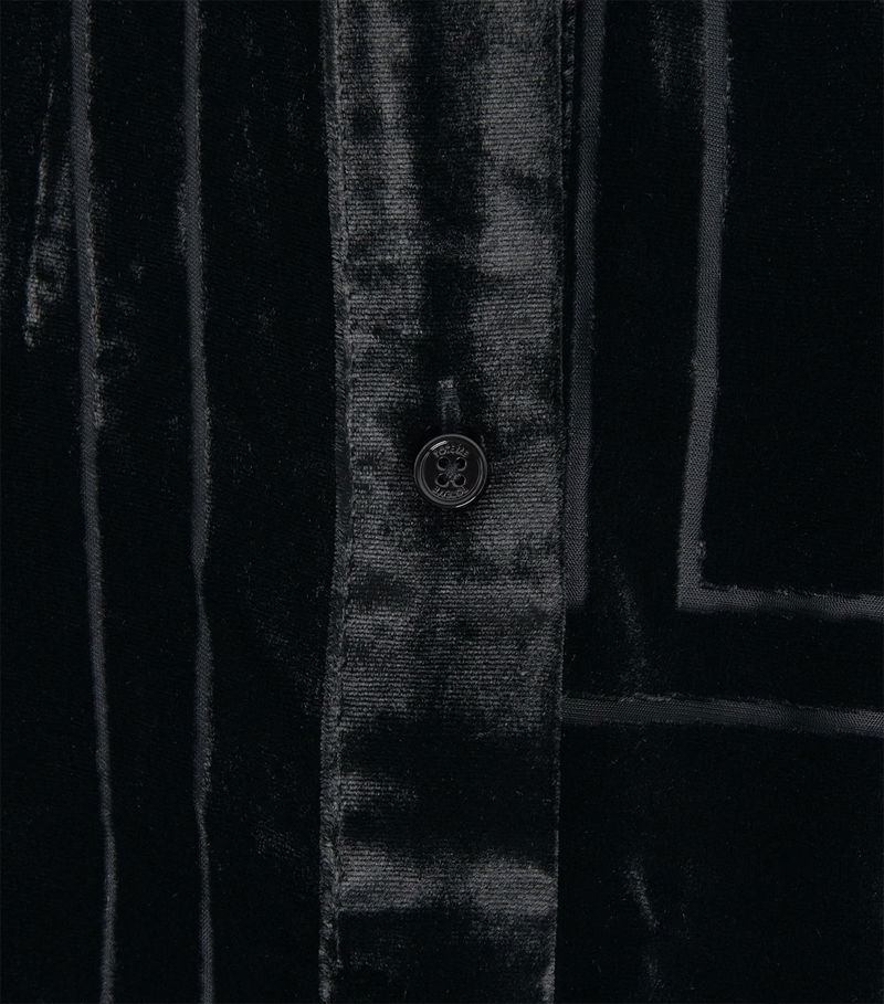 Here, this shirt is cut from silk velvet that offers a fluid drape, finished with the label’s signature monogram topstitching for a characterful flourish.