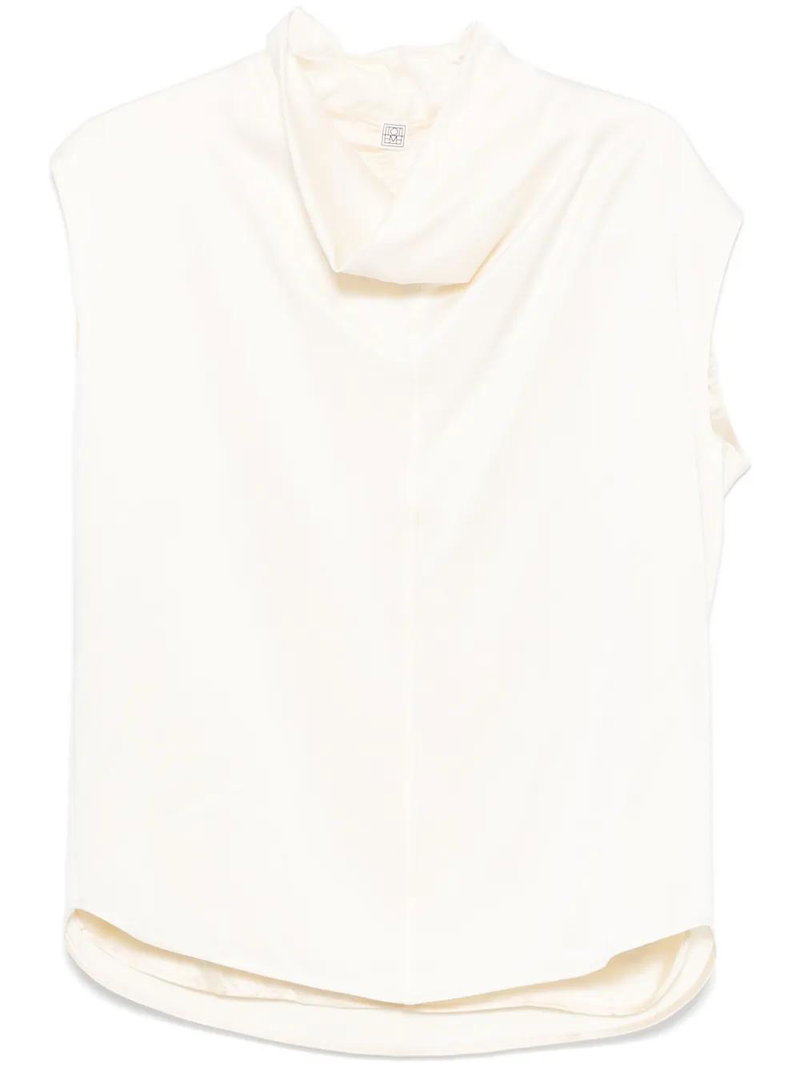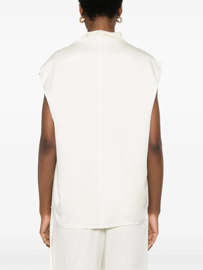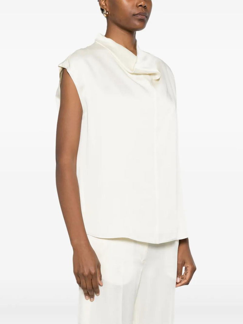 Sleeveless Funnel-neck Blouse - White