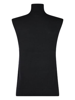 Black, sleeveless, crew neck.