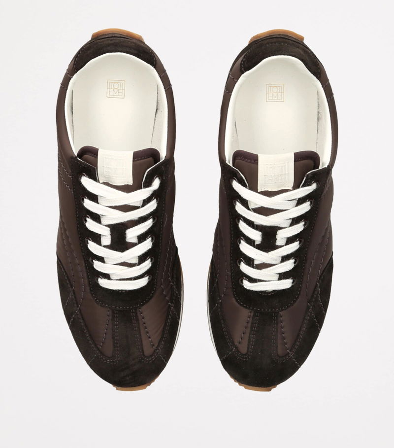 toteme’s Sport sneakers encapsulate its timeless elegance and minimalism with a contemporary twist. As the name suggests, the pair takes inspiration from classic running styles with its panelled upper and textured rubber sole that makes its way up the heel for a retro touch. Note how the topstitching follows the shapes of the brand’s lettering for a subtle signature sign-off.