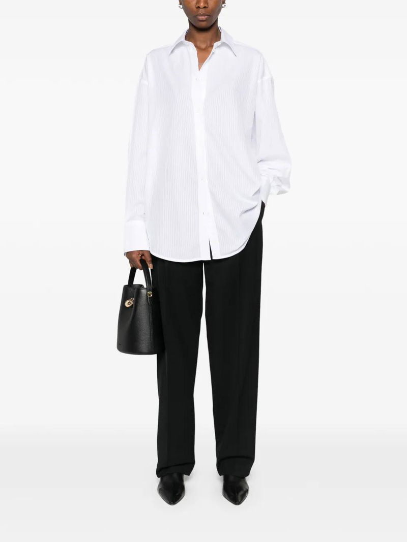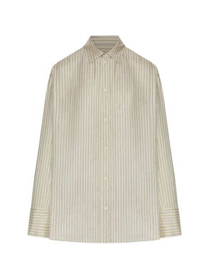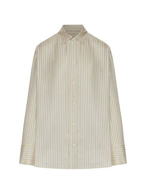 White striped button fastening long sleeves.